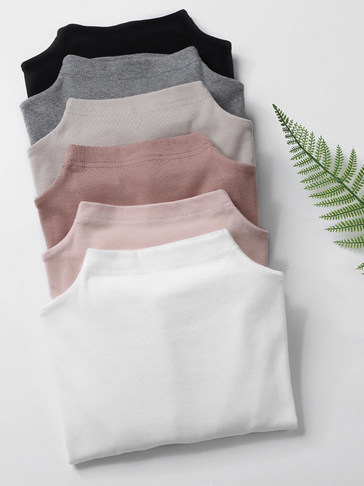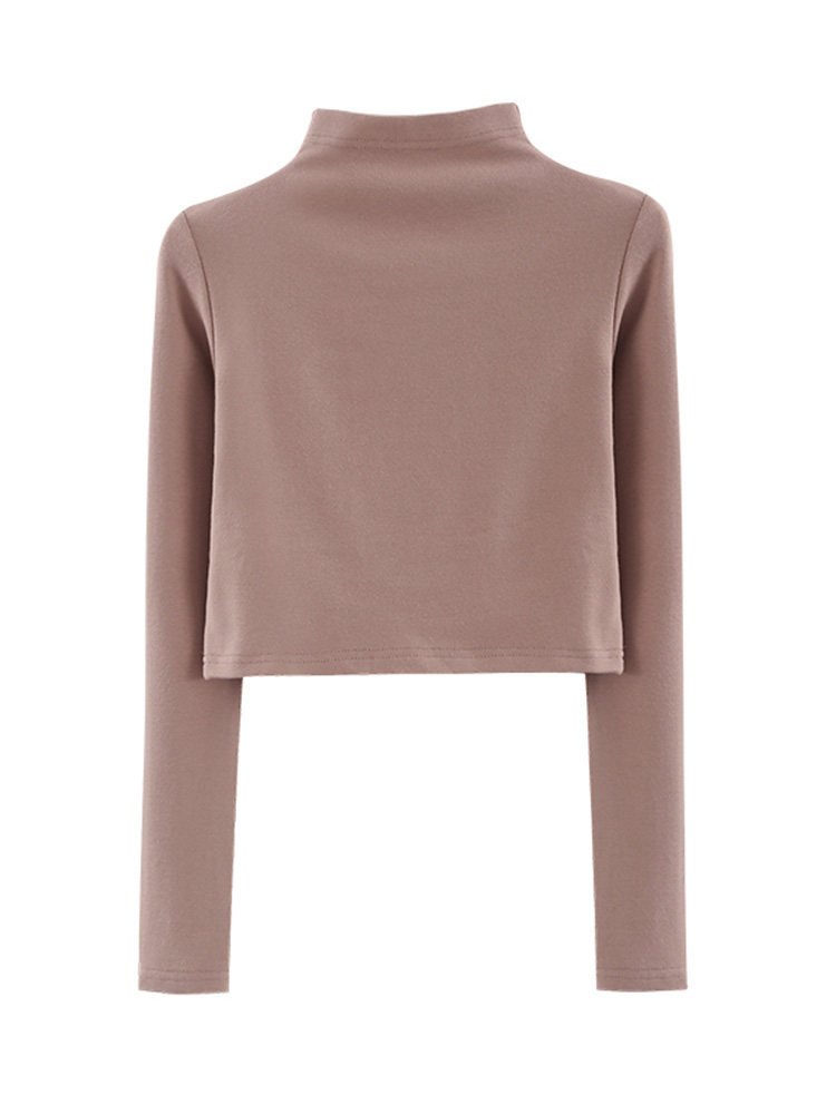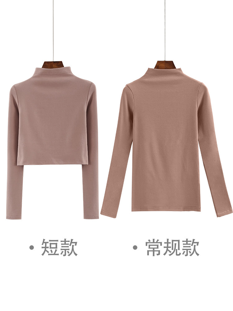 春秋季纯白修身半高领短款长袖纯欲内搭体恤打底衫女高腰上衣T恤