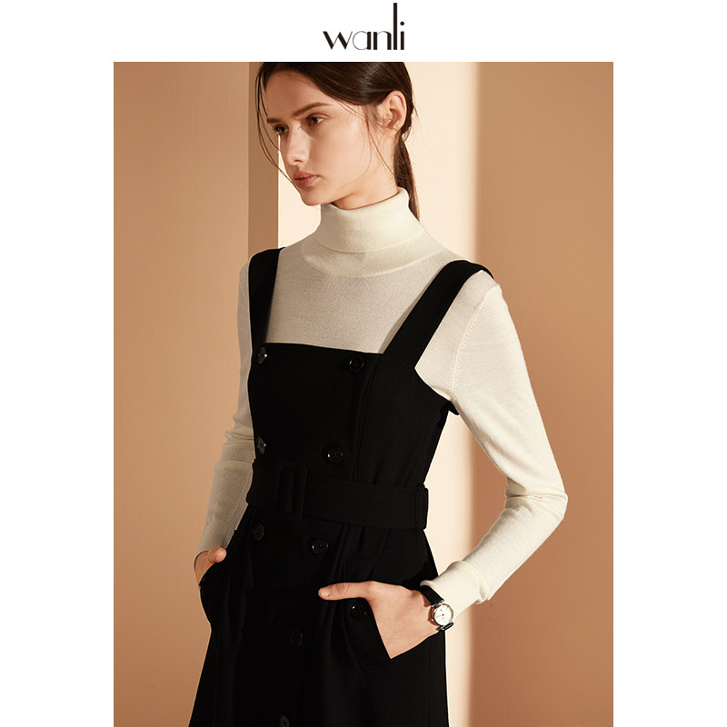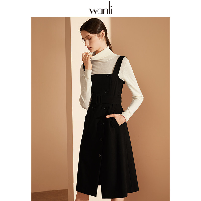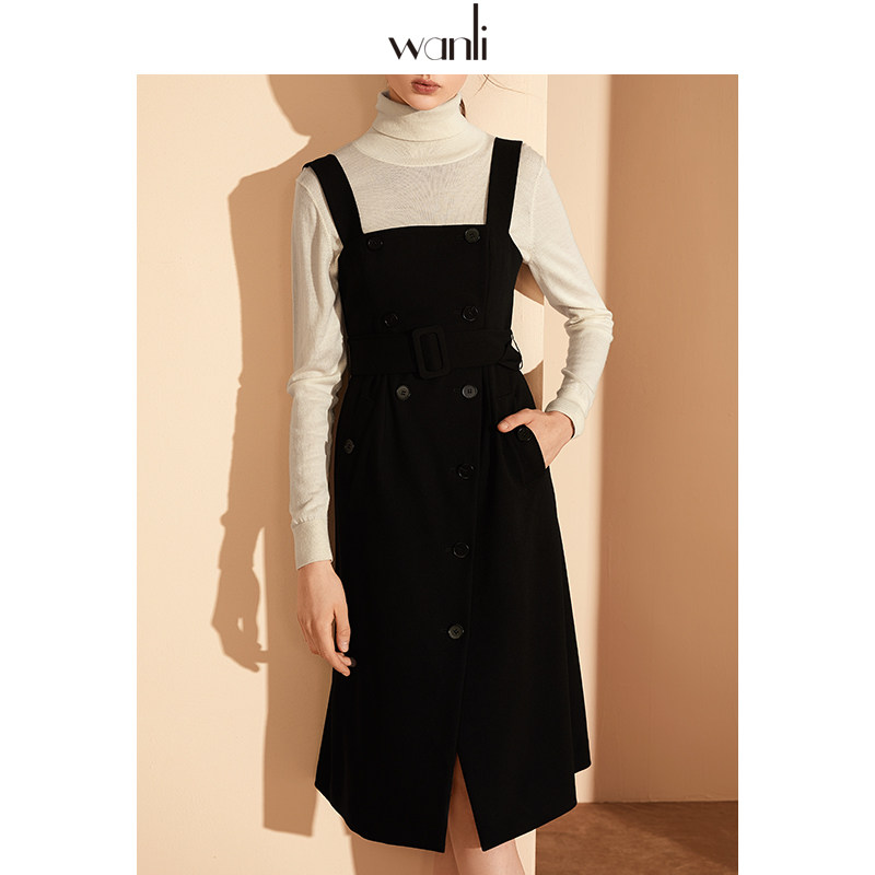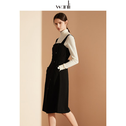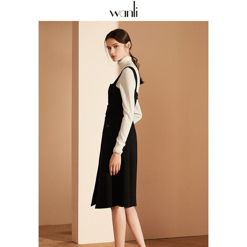 万丽女装无袖连衣裙新款夏装黑色简约背带打底百搭加厚裙子女