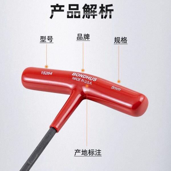 黑内六角扳手进口T匙-波顿加长发10mm平美国2型加硬头公制柄六角T