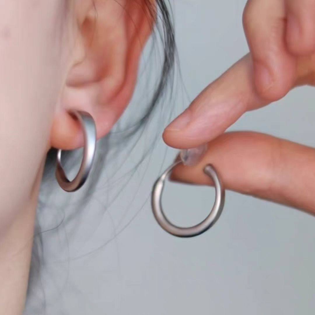 [方圆脸必戴]简约哑光圆圈无耳洞耳夹气质冷淡风素圈时尚高级耳饰