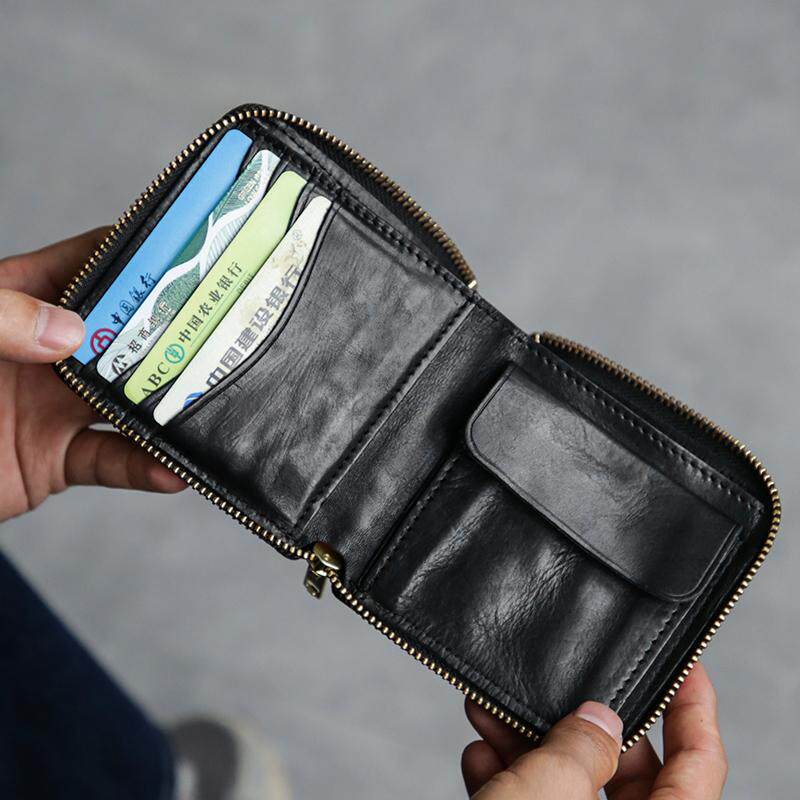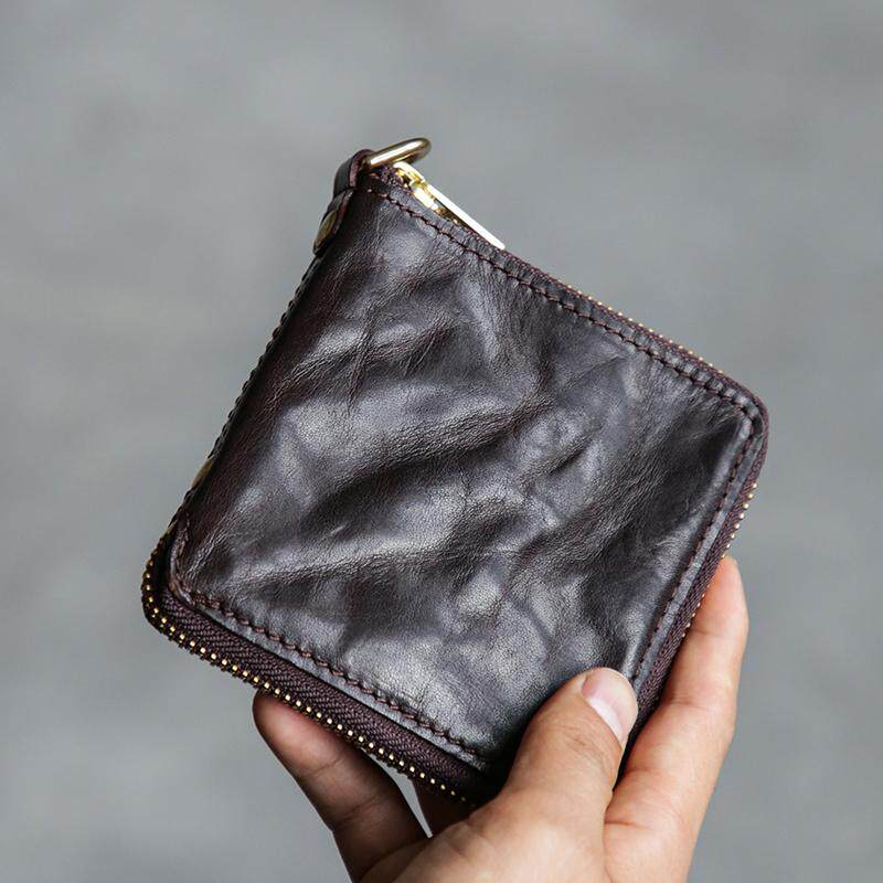 古造真皮男士短款钱包植鞣头层牛皮日系简约手工卡包零钱便携皮夹