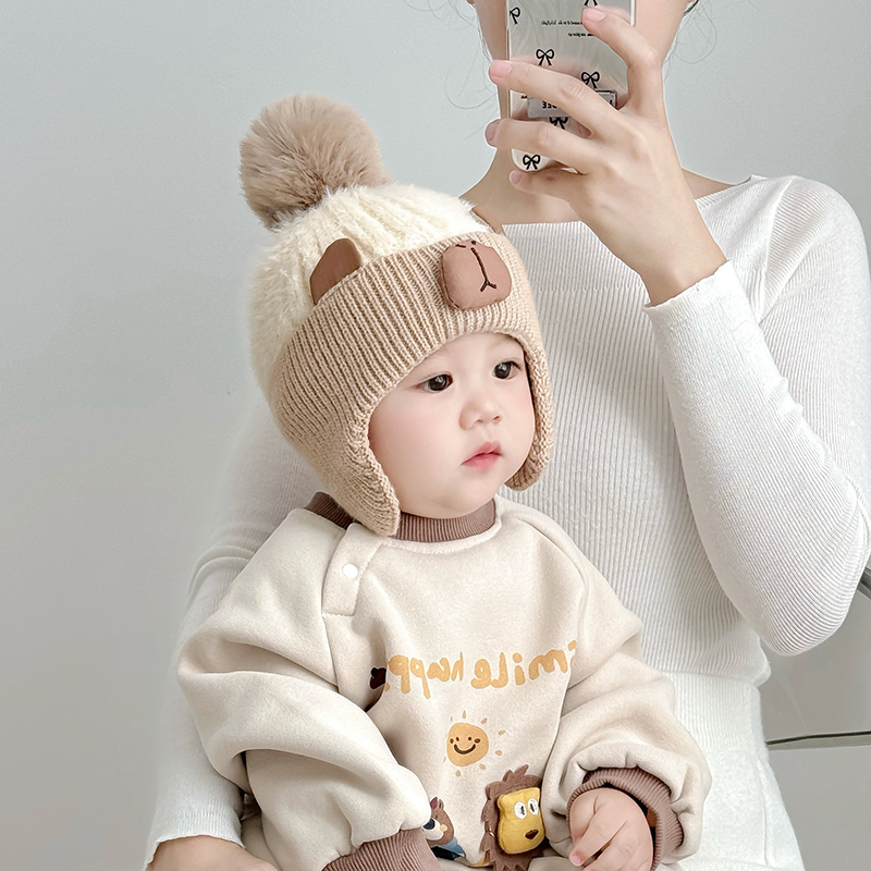 宝宝帽子秋冬季可爱卡通保暖加厚针织套头帽男女童防风护耳毛线帽