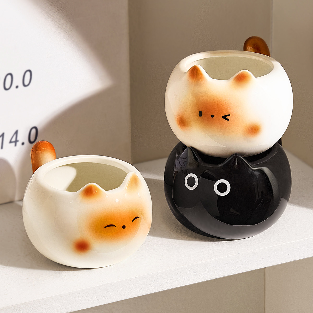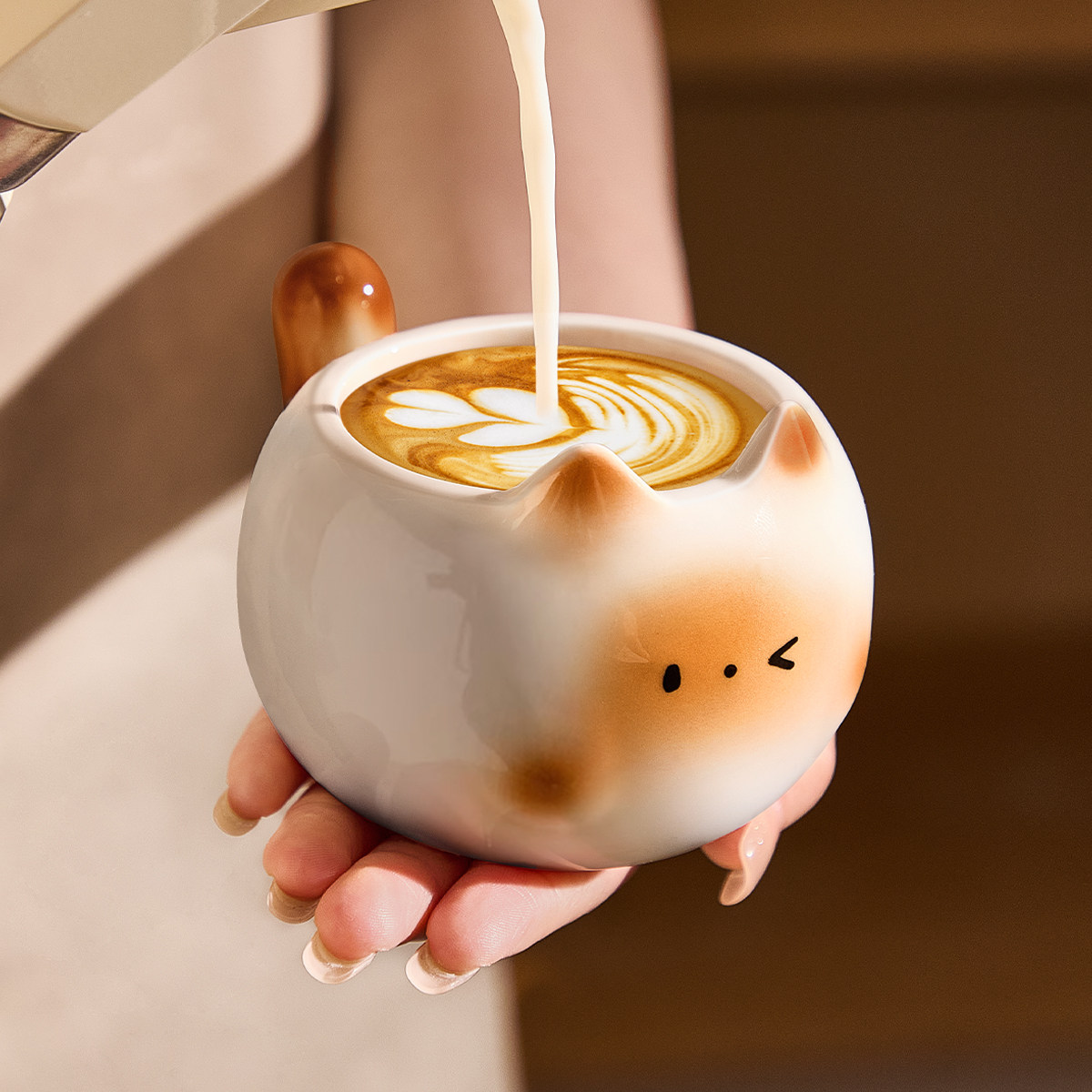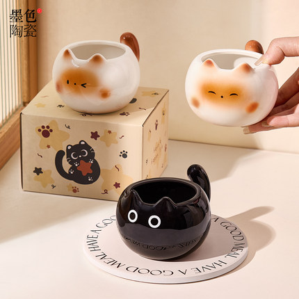 墨色暹罗猫咖啡杯可爱手握马克杯小众设计感高颜值女生陶瓷水杯子