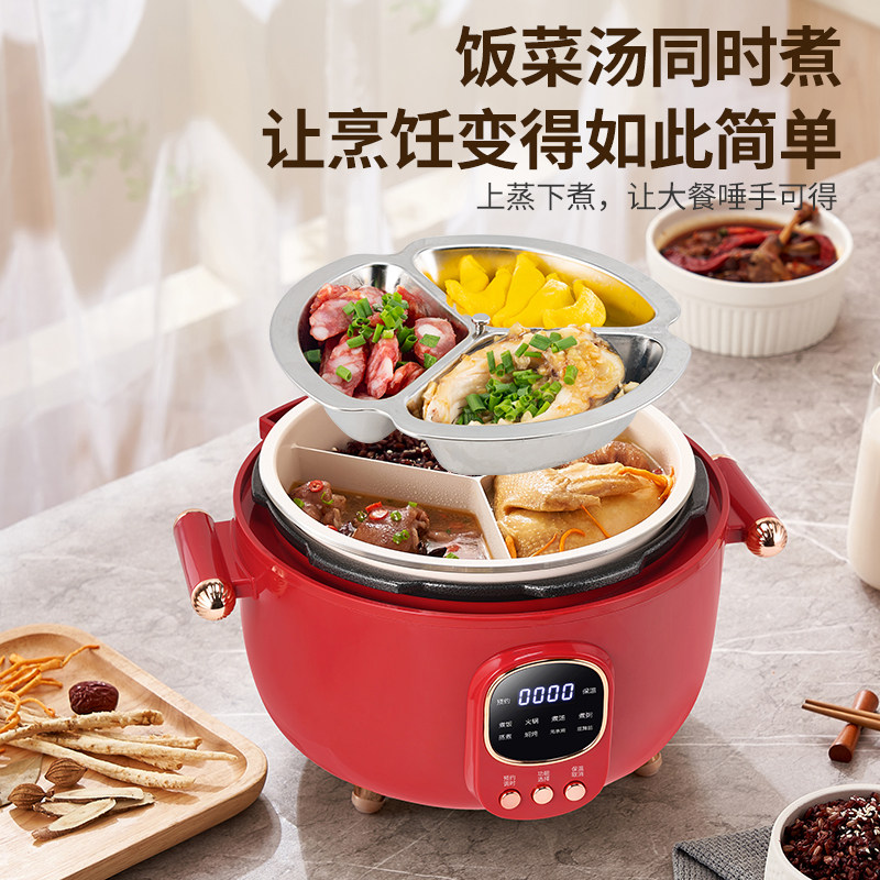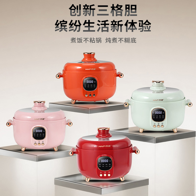 韩派鸳鸯三格电压力锅家用小型多功能智能双胆一锅三用高压锅饭煲
