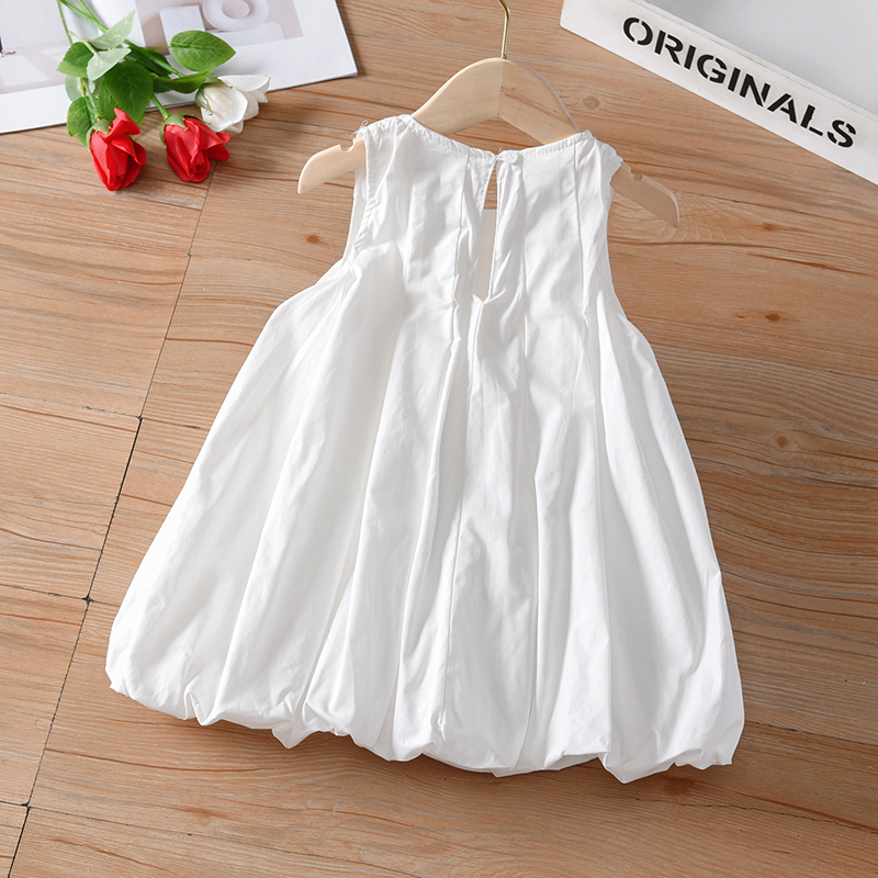 儿童法式简约无袖背心裙夏女童连衣裙夏季气质纯白色洋气花苞裙子