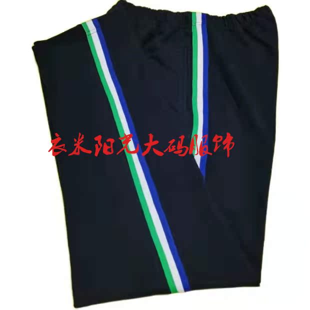 加肥加大全棉新款男女学生运动直筒校裤经典三道杠舒适黑蓝休闲裤