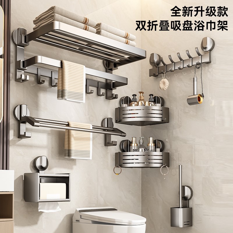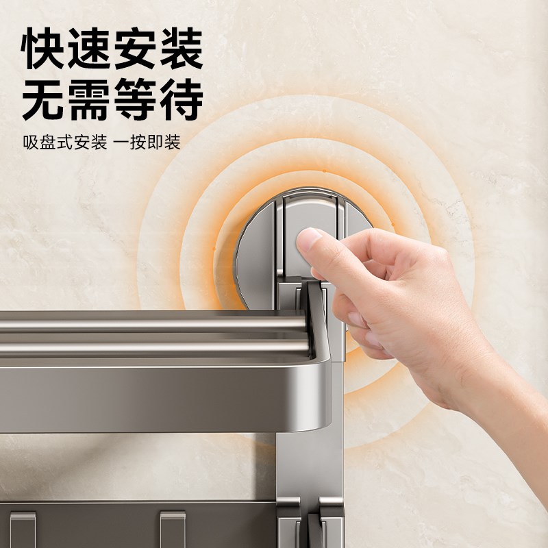 吸盘毛巾架免打孔卫生o间置物架洗手间浴室厕所挂件套装浴巾架收