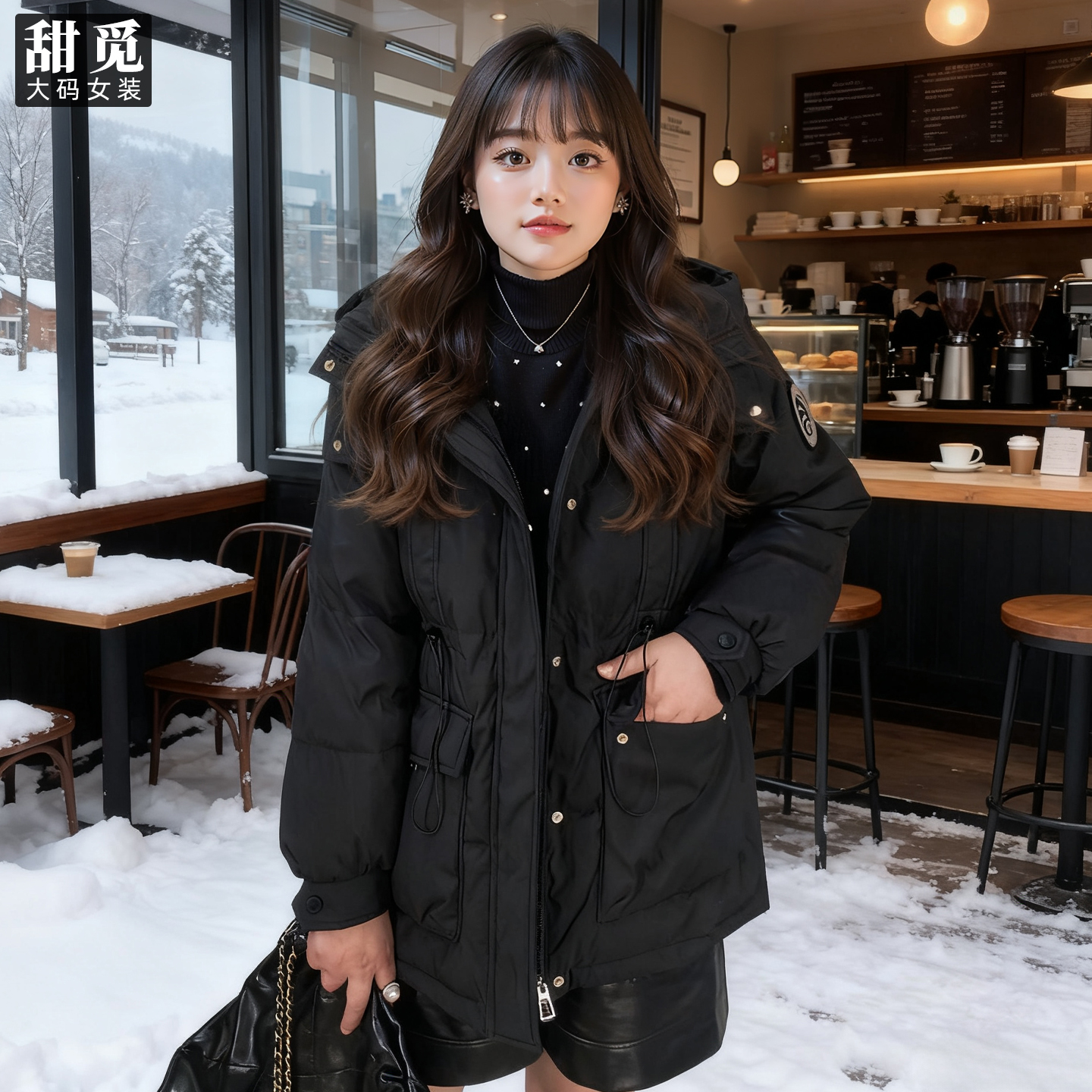 甜觅特大码女装冬装胖mm300斤加肥时尚洋气减龄冲锋衣保暖羽绒服