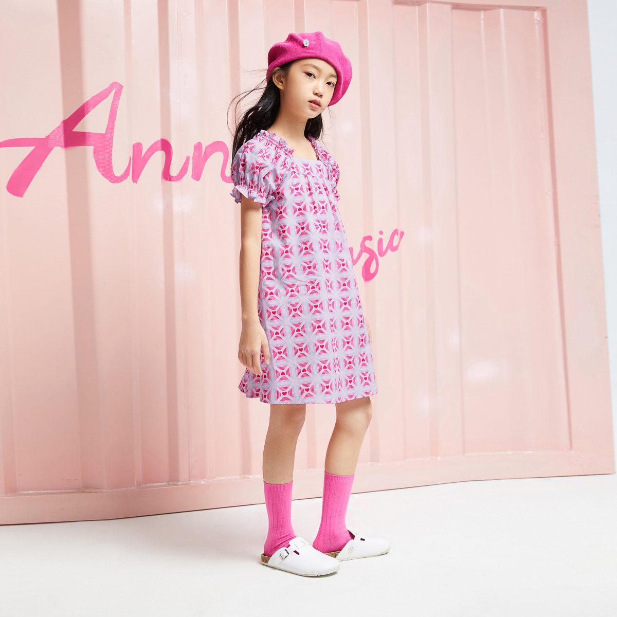 安奈儿女童装短袖连衣裙夏季款精梳纯棉公主裙可爱俏皮甜美
