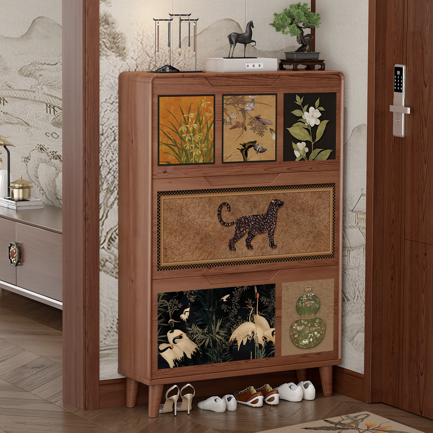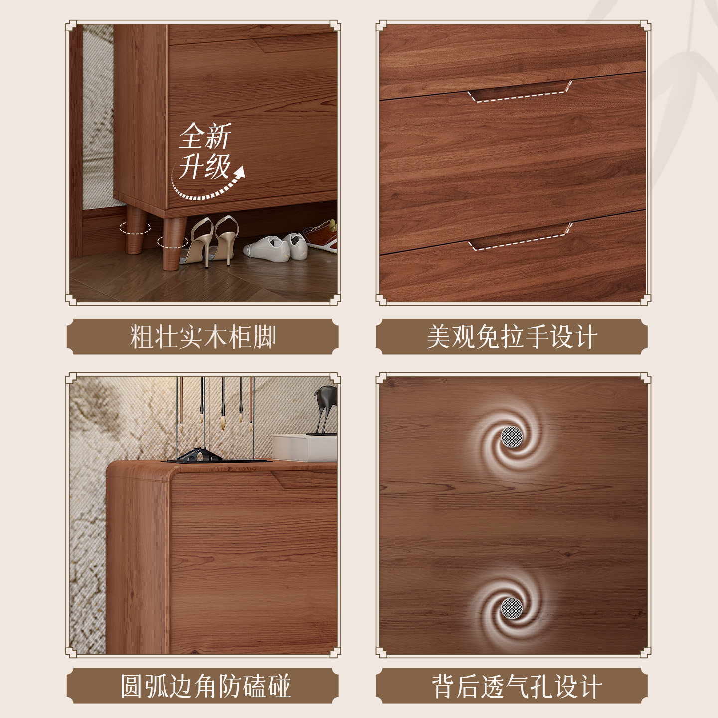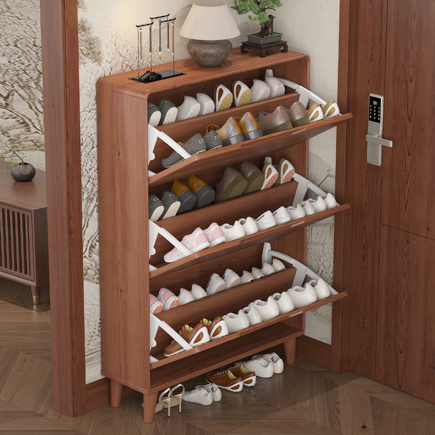 中式鞋柜家用门口收纳柜一体靠墙入户玄关超薄实木门外走廊用翻斗