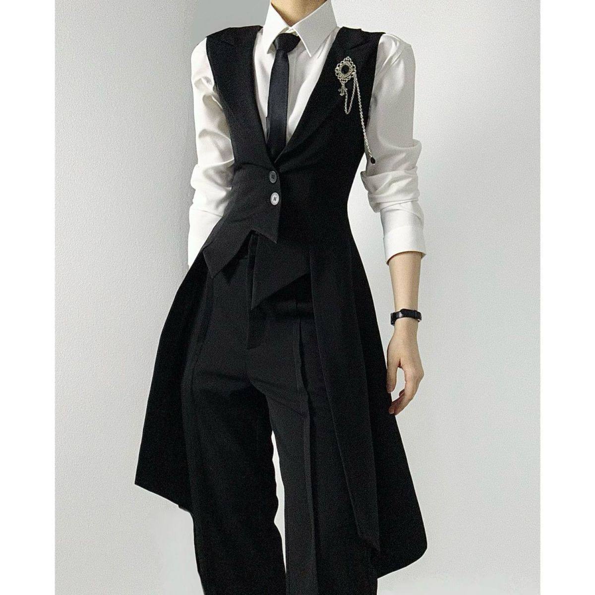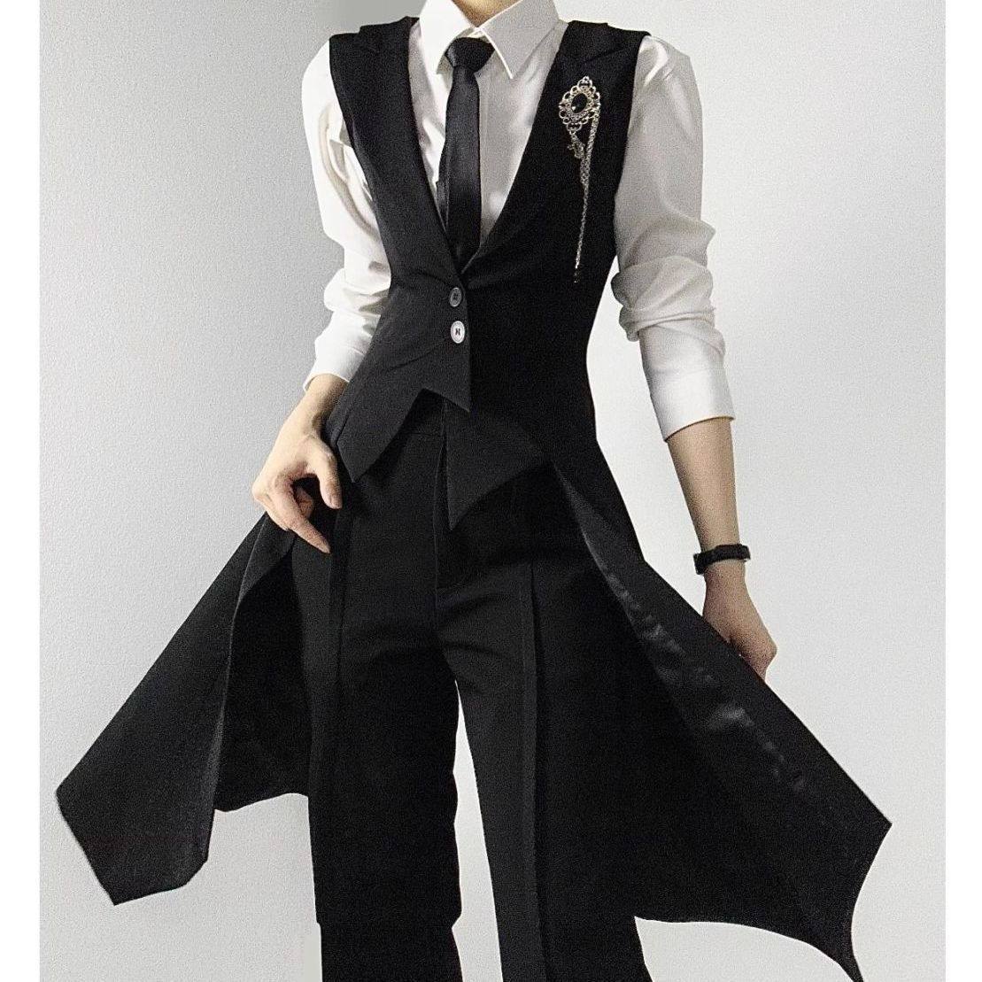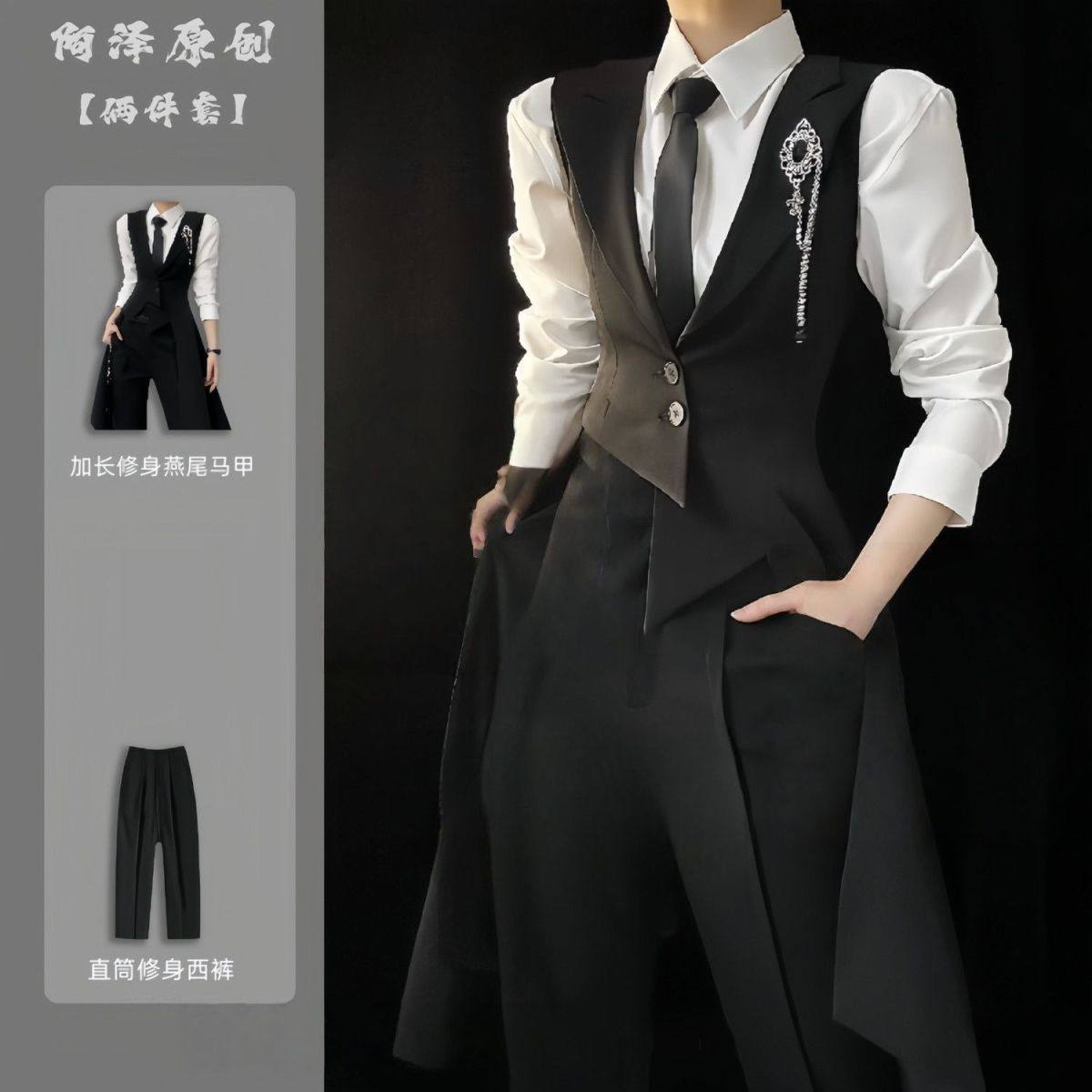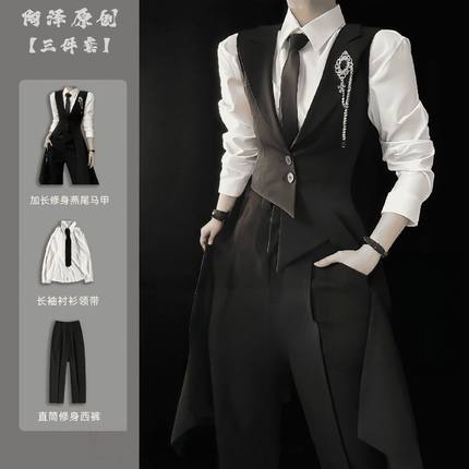 新款中性风加长西装燕尾马甲套装男生衬衫修身无性别cos万用西装