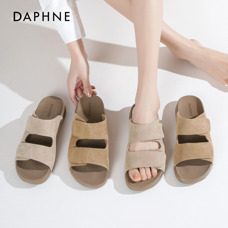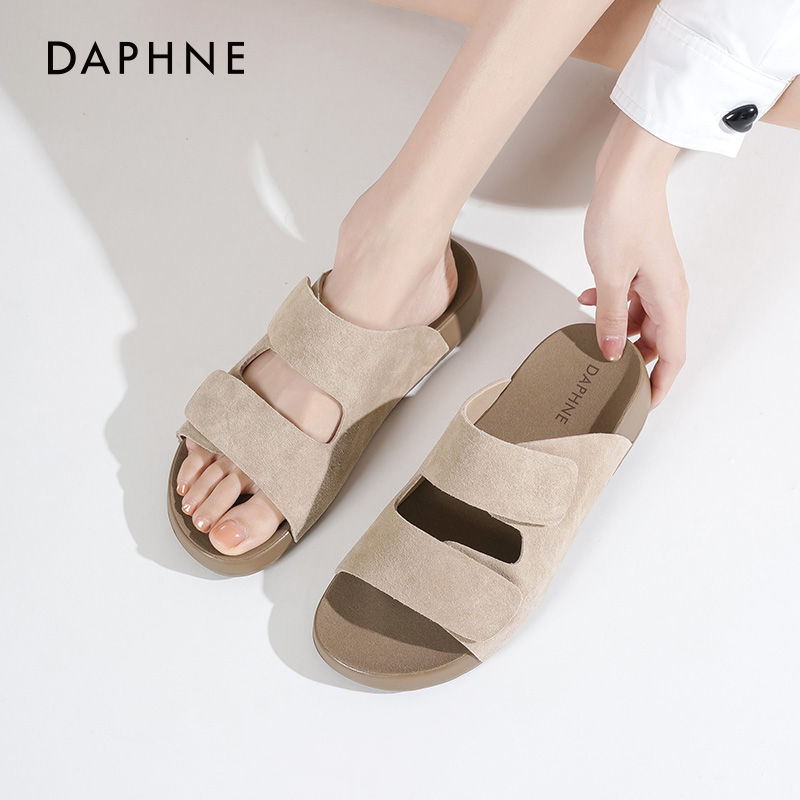 达芙妮厚底勃肯拖鞋女魔术贴拖鞋