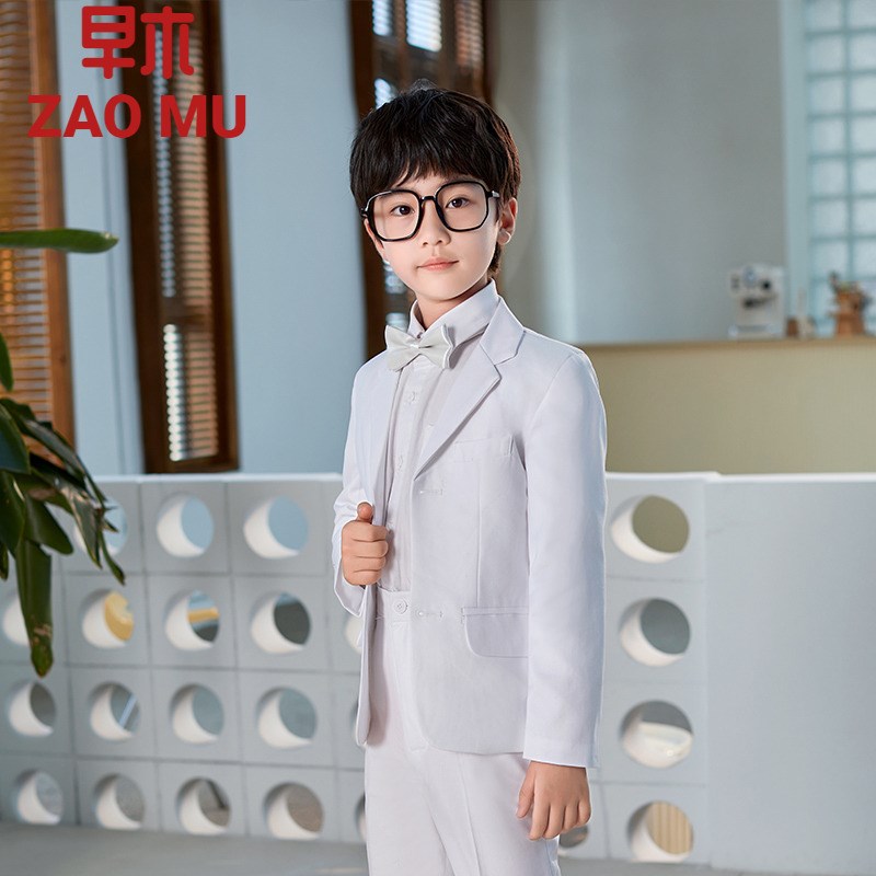 男童主持人西装套装礼服钢琴演出服白色小西服诗朗诵正装花童英伦
