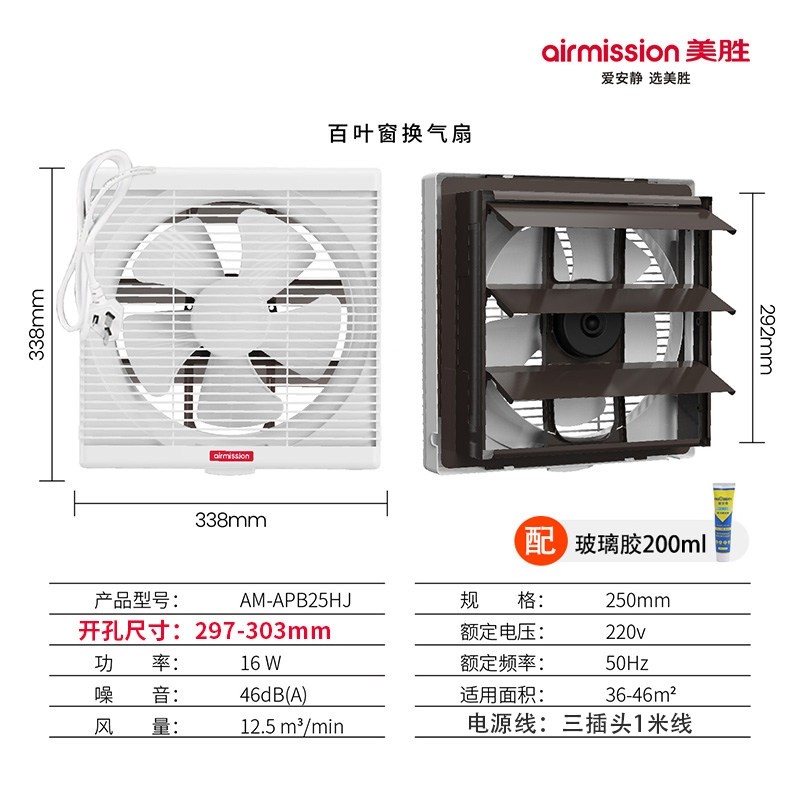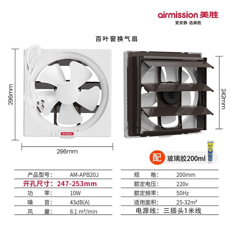 金羚美胜百叶窗排气扇卫生间6/8气扇变频节能方形排风扇风机寸换