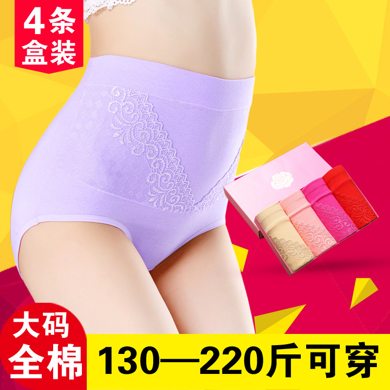 大码内裤女胖mm200斤纯棉高腰妈妈中年收腹加肥加大红色全棉裤头