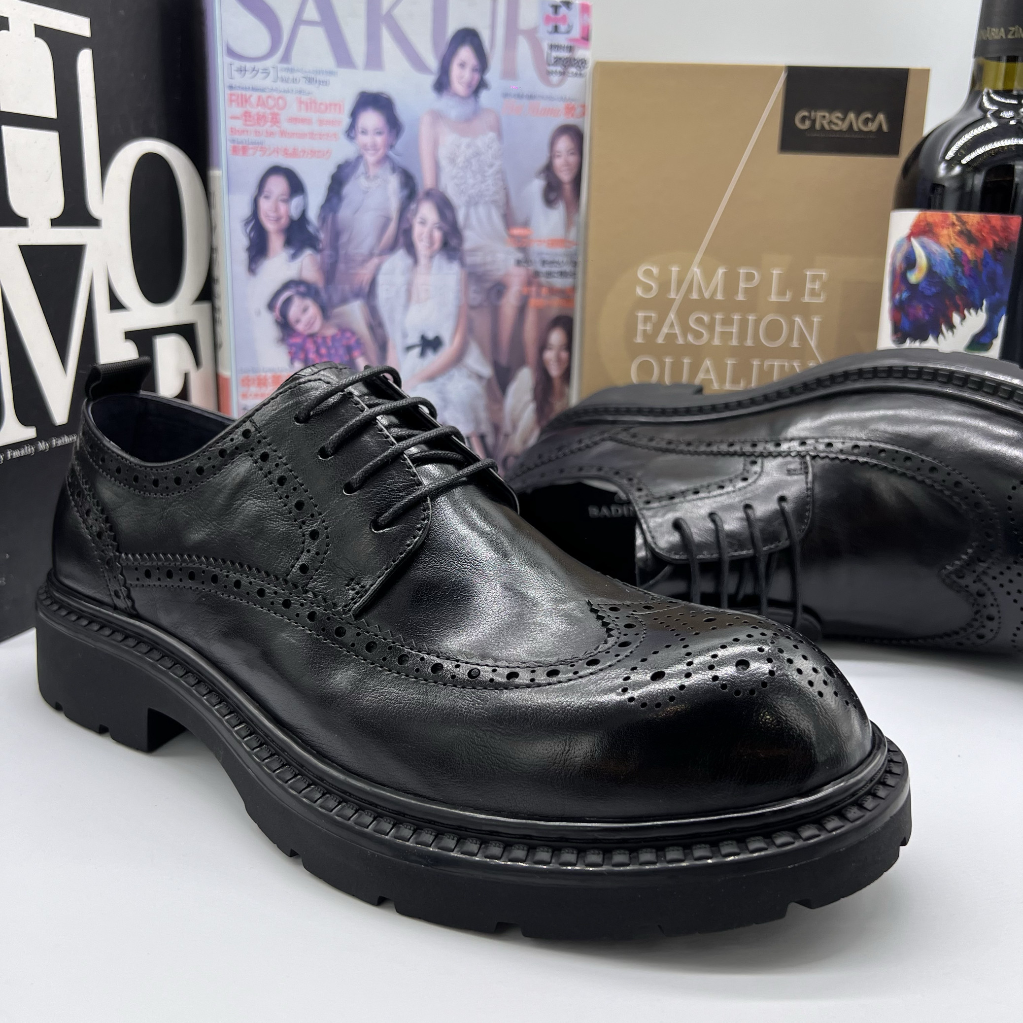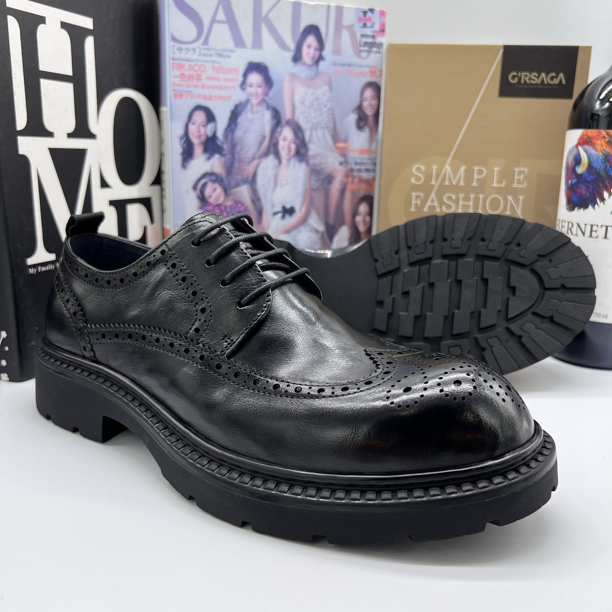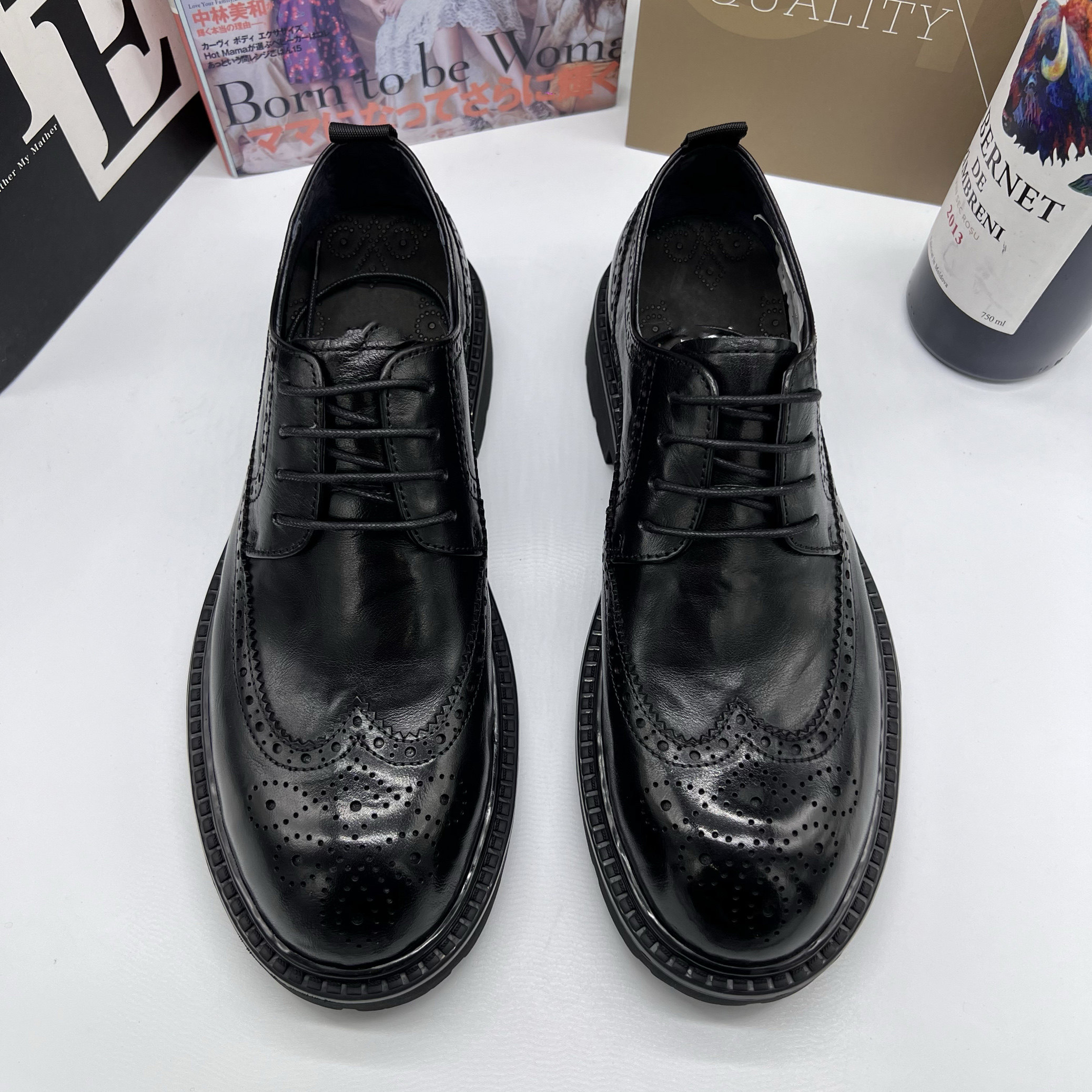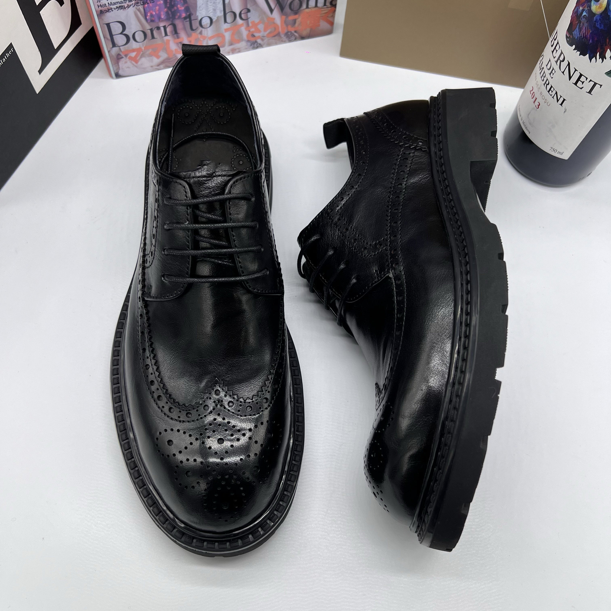 帕达索潮流商务休闲皮鞋大头增高鞋复古英伦布洛克雕花男鞋241039
