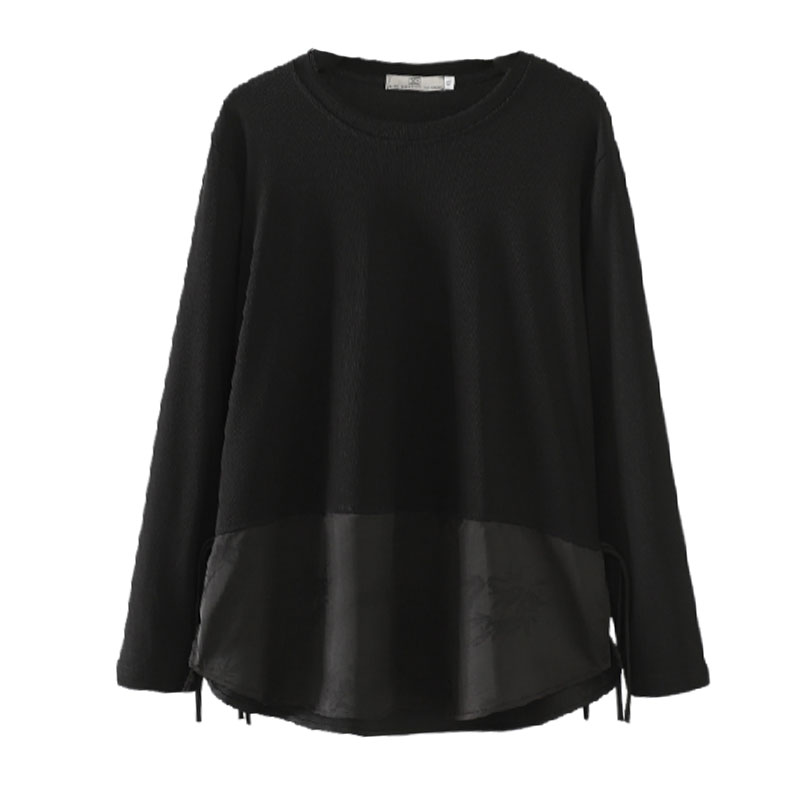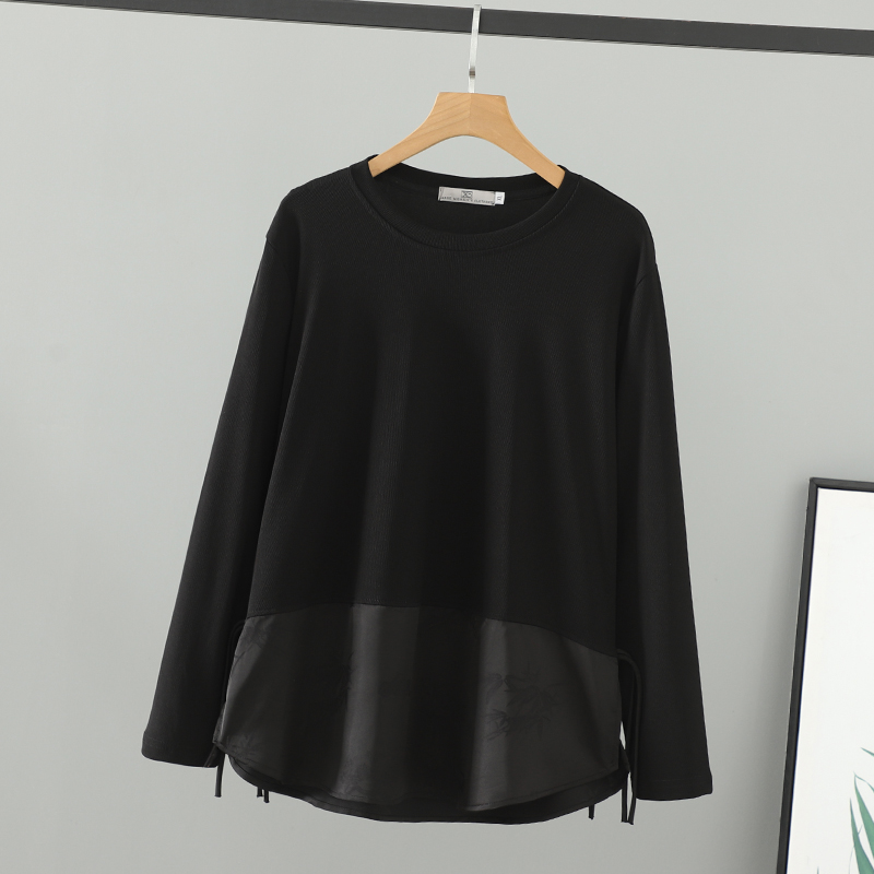 春装大码女装胖mm新款2025长袖国风新中式提花上衣女圆领拼接T恤