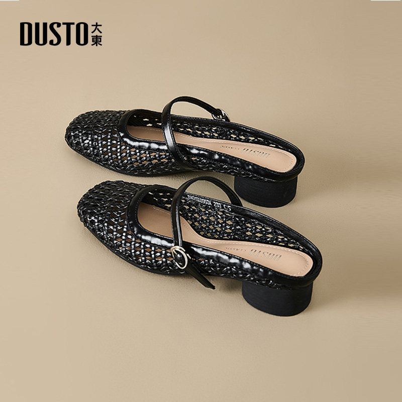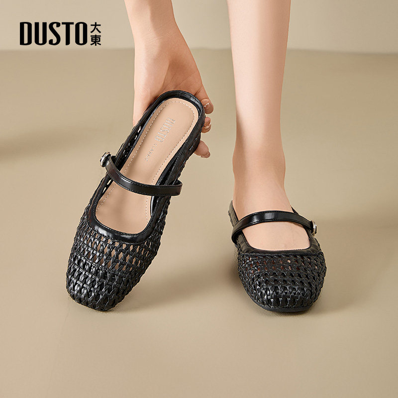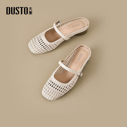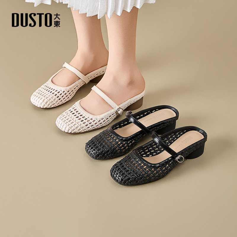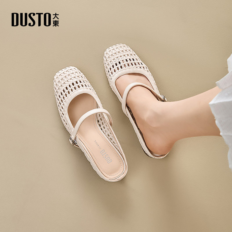 大东dd包头半拖鞋女夏季外穿2026新款镂空编织小凉拖粗跟穆勒女鞋