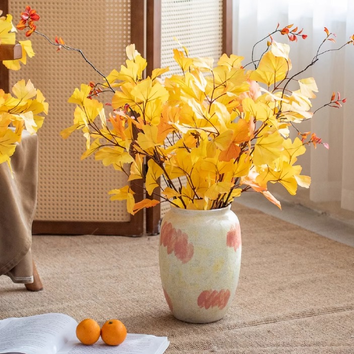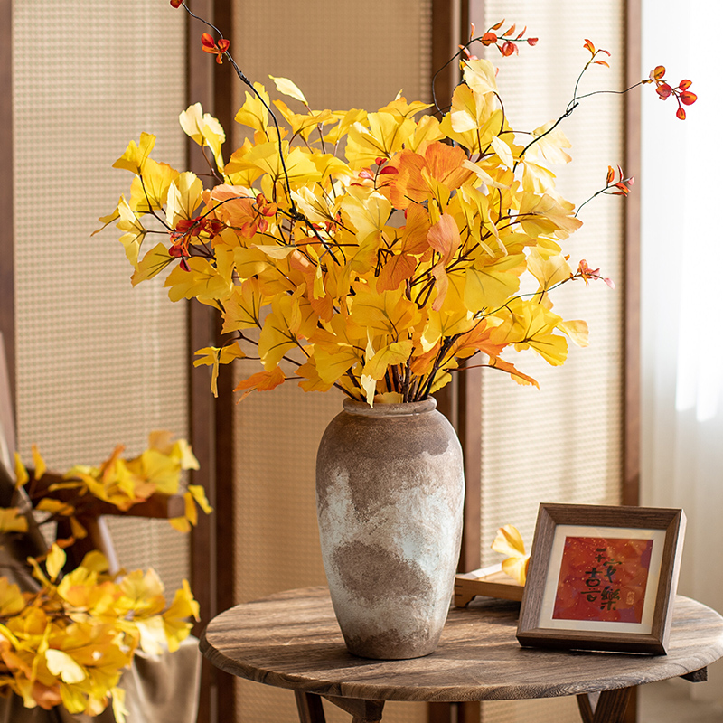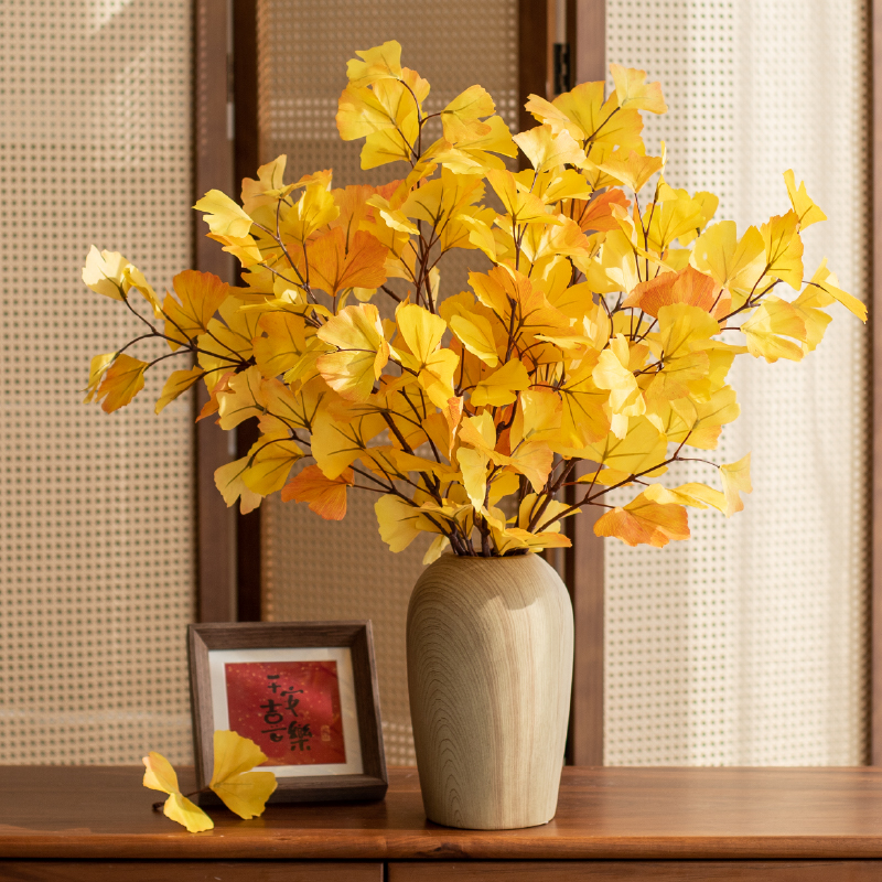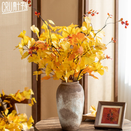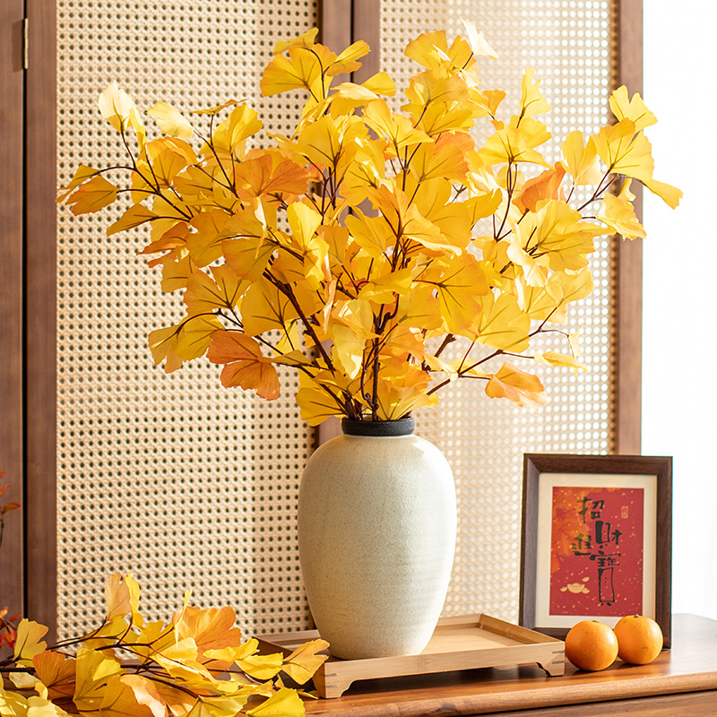 银杏叶仿真花摆件客厅仿真绿植秋季侘寂风假花艺橱窗装饰场景布置