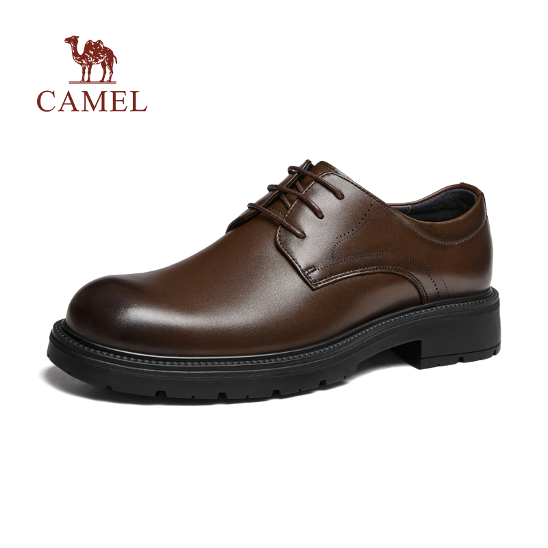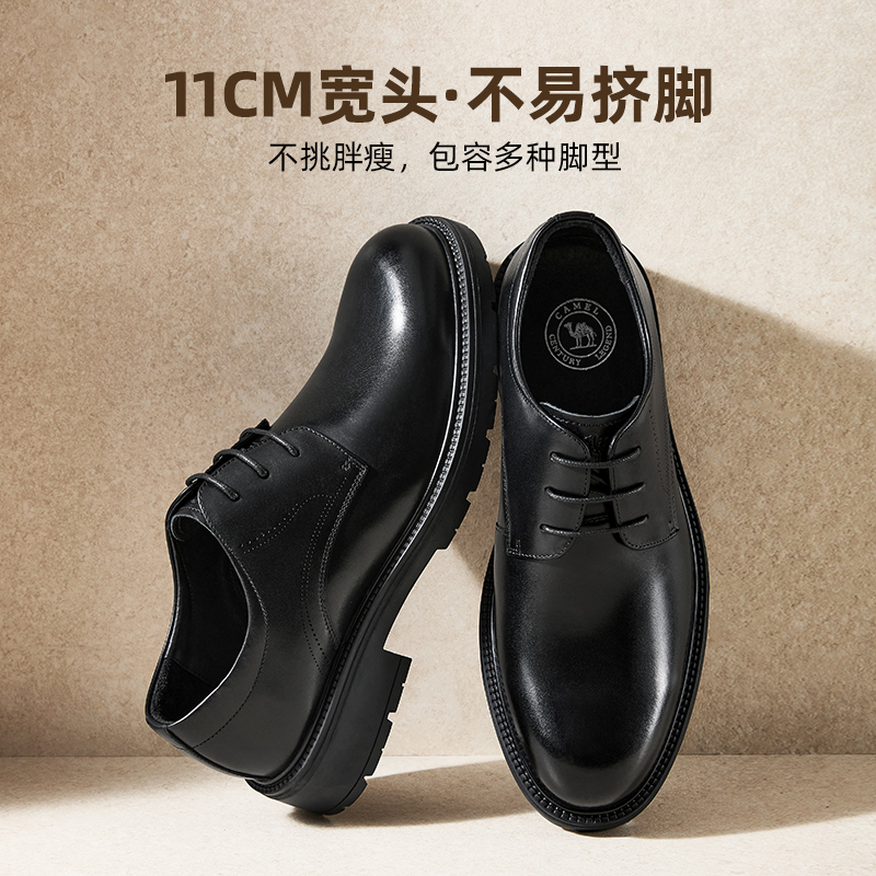 骆驼男鞋2025冬季新款舒适真皮复古德比婚礼商务休闲男士正装皮鞋