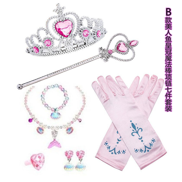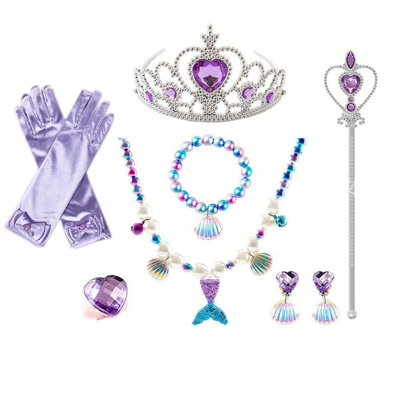 美人鱼项链套装贝壳首饰女童珍珠手链公主皇冠魔法棒假发女孩配饰