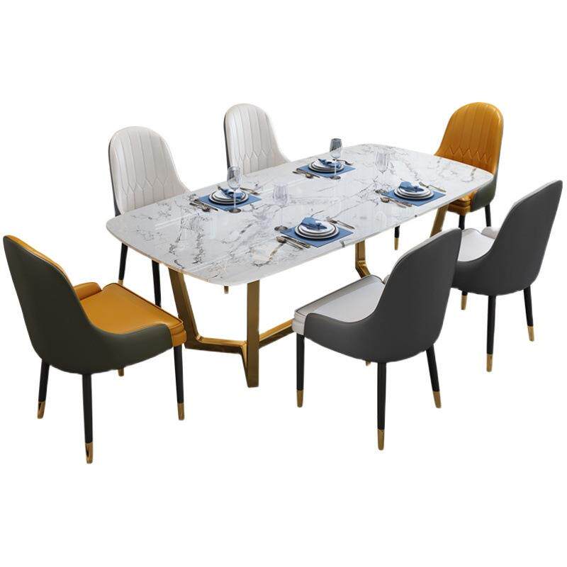 轻奢岩板餐桌意式现代简约长餐台餐椅组合北欧餐厅成套家具