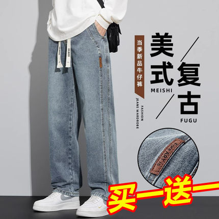 Yishion以纯美式复古牛仔裤男士宽松直筒休闲长裤秋季男款潮牌阔