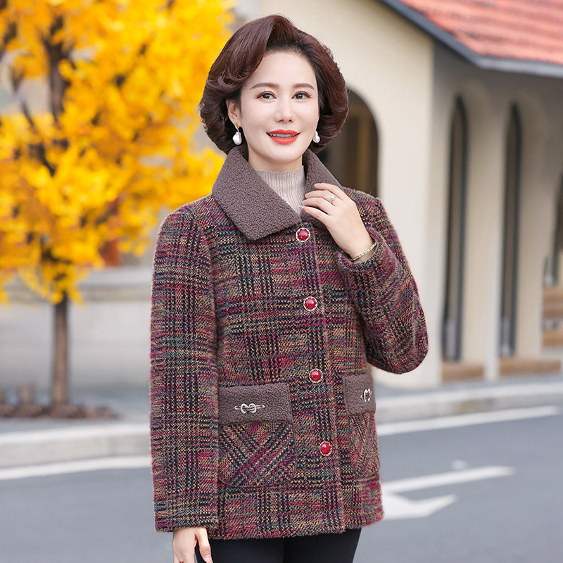妈妈秋装水貂绒外套2025新款中年女秋冬短款棉上衣中老年洋气毛呢