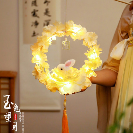 元宵节儿童手提兔子灯笼diy手工材料古风汉服发光小兔子花灯