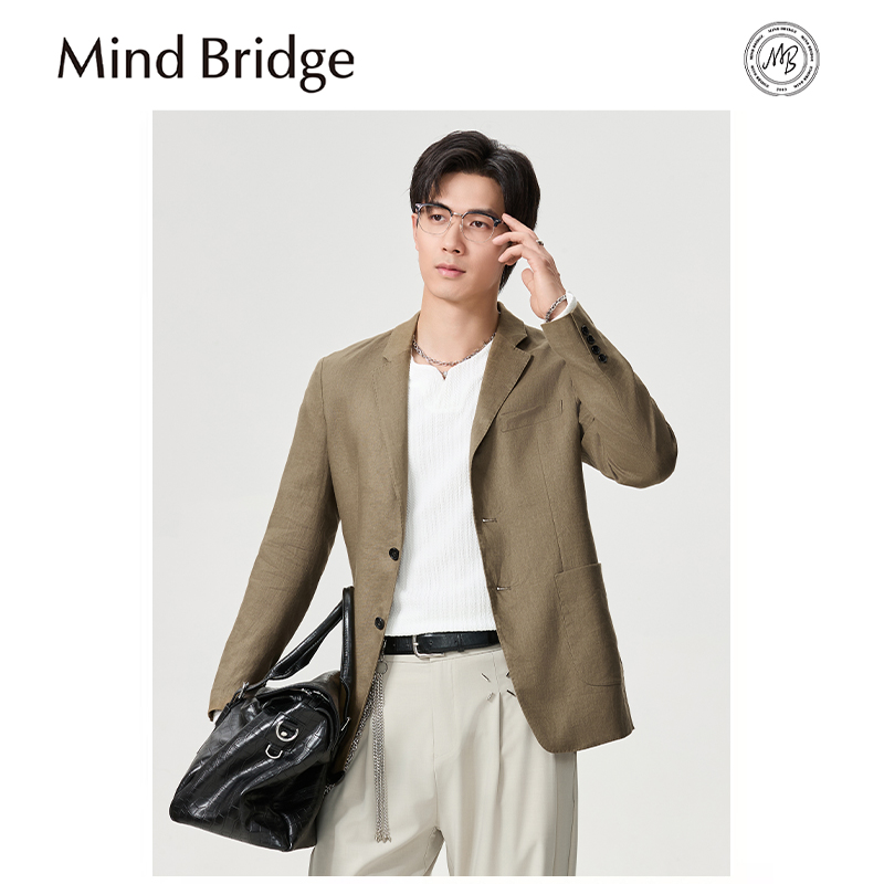 Mind Bridge100%亚麻西服男士春夏季小西装商务休闲便服薄款单西