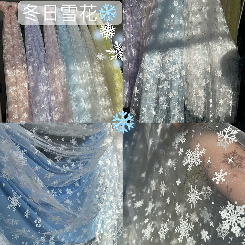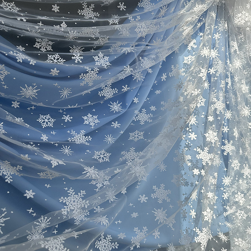 冬日雪花网纱幼儿园布料DIY拍照装饰背景服装裙白纱面料婚纱纱幔