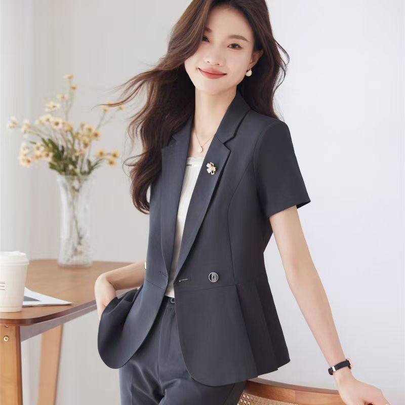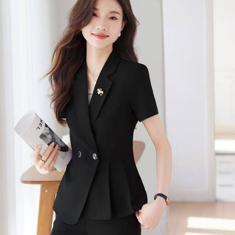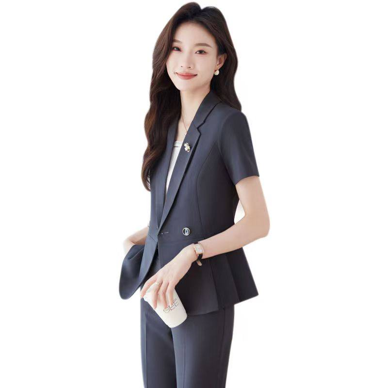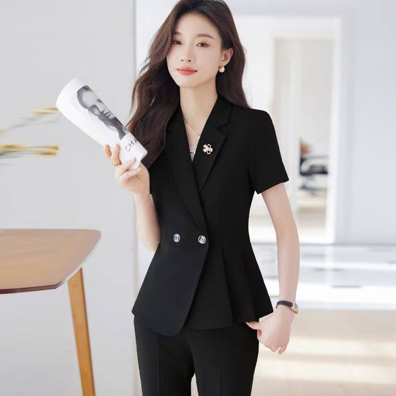 职业短袖西装套装女夏季气质面试正装美容师西服外套珠宝店工作服