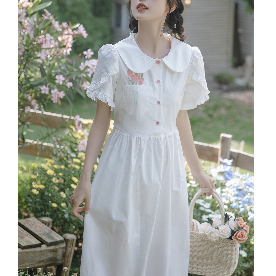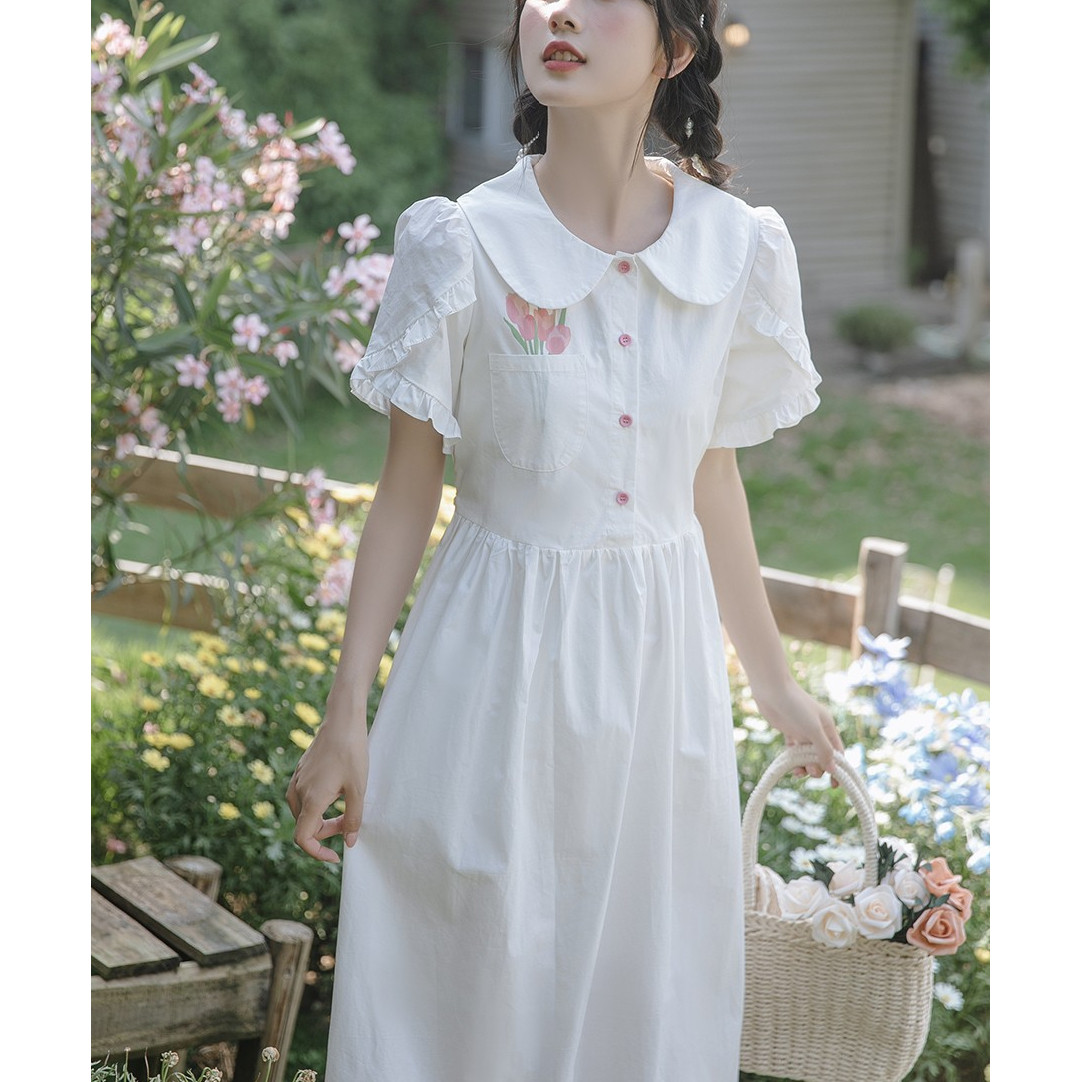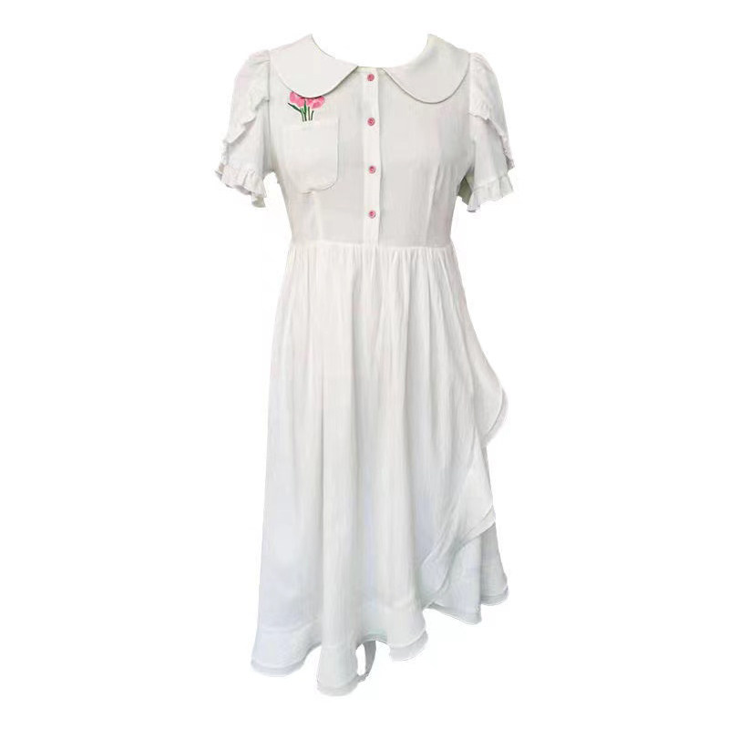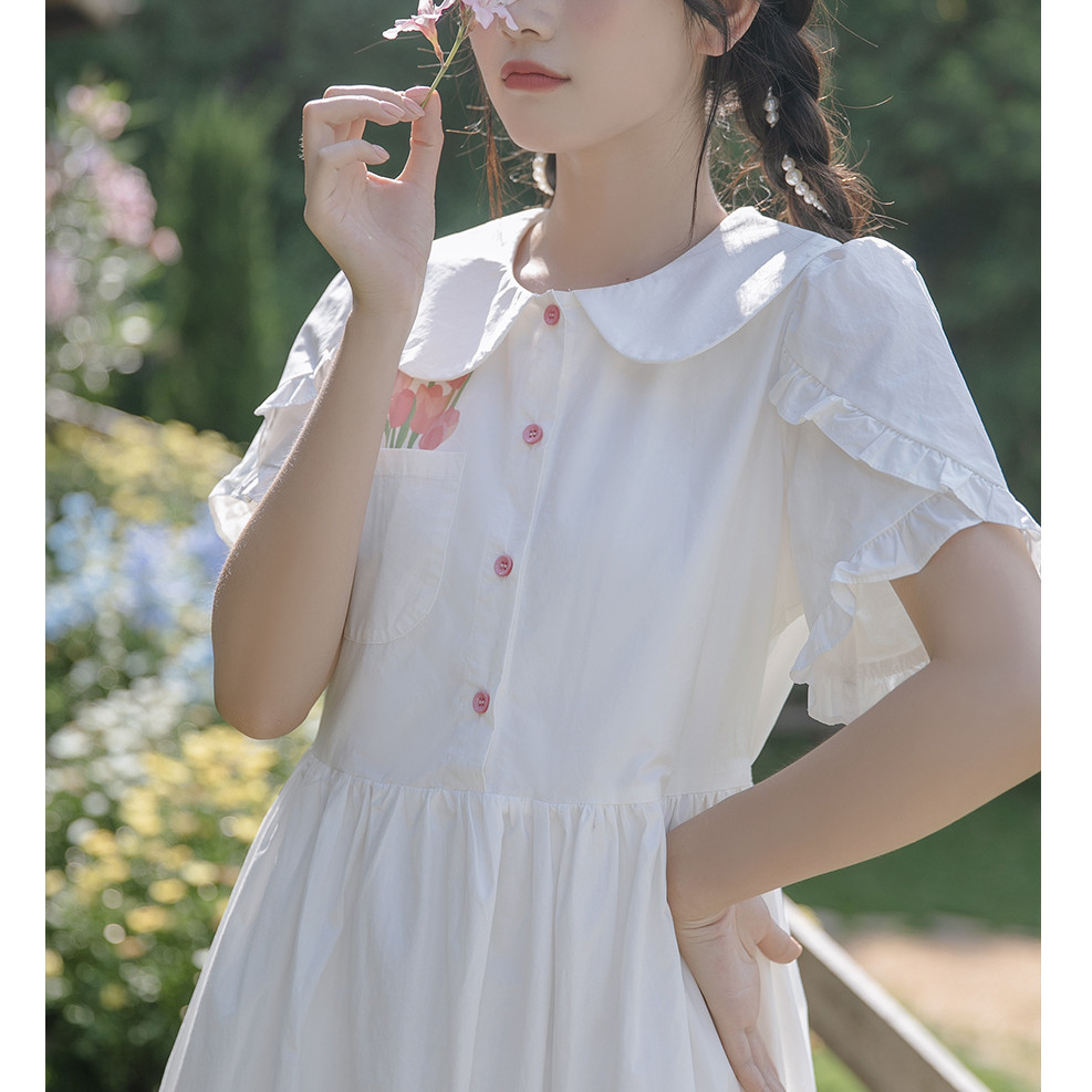 学生学院风白色温柔少女连衣裙女夏季新款夏天奶甜收腰裙子初恋系