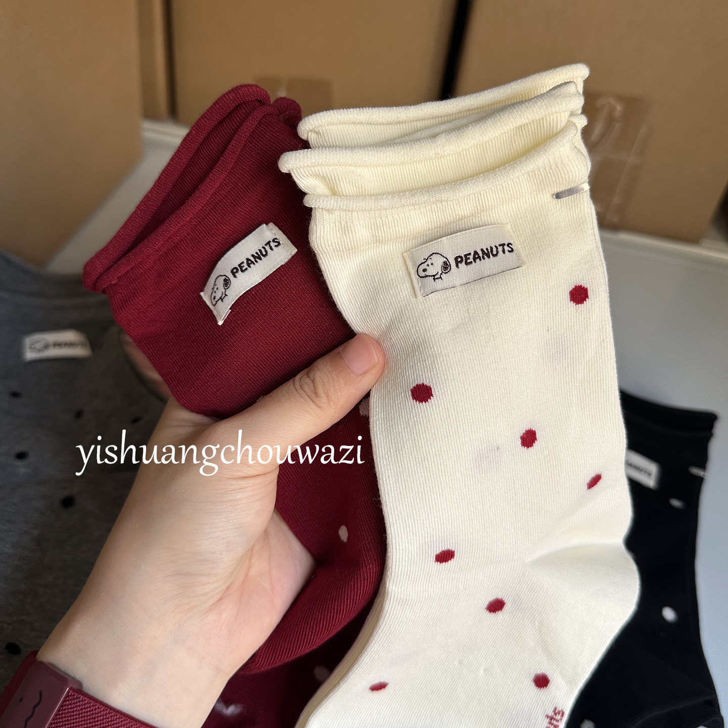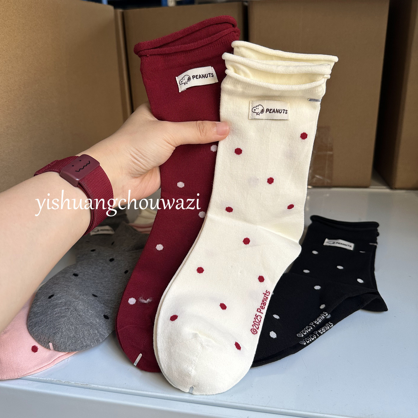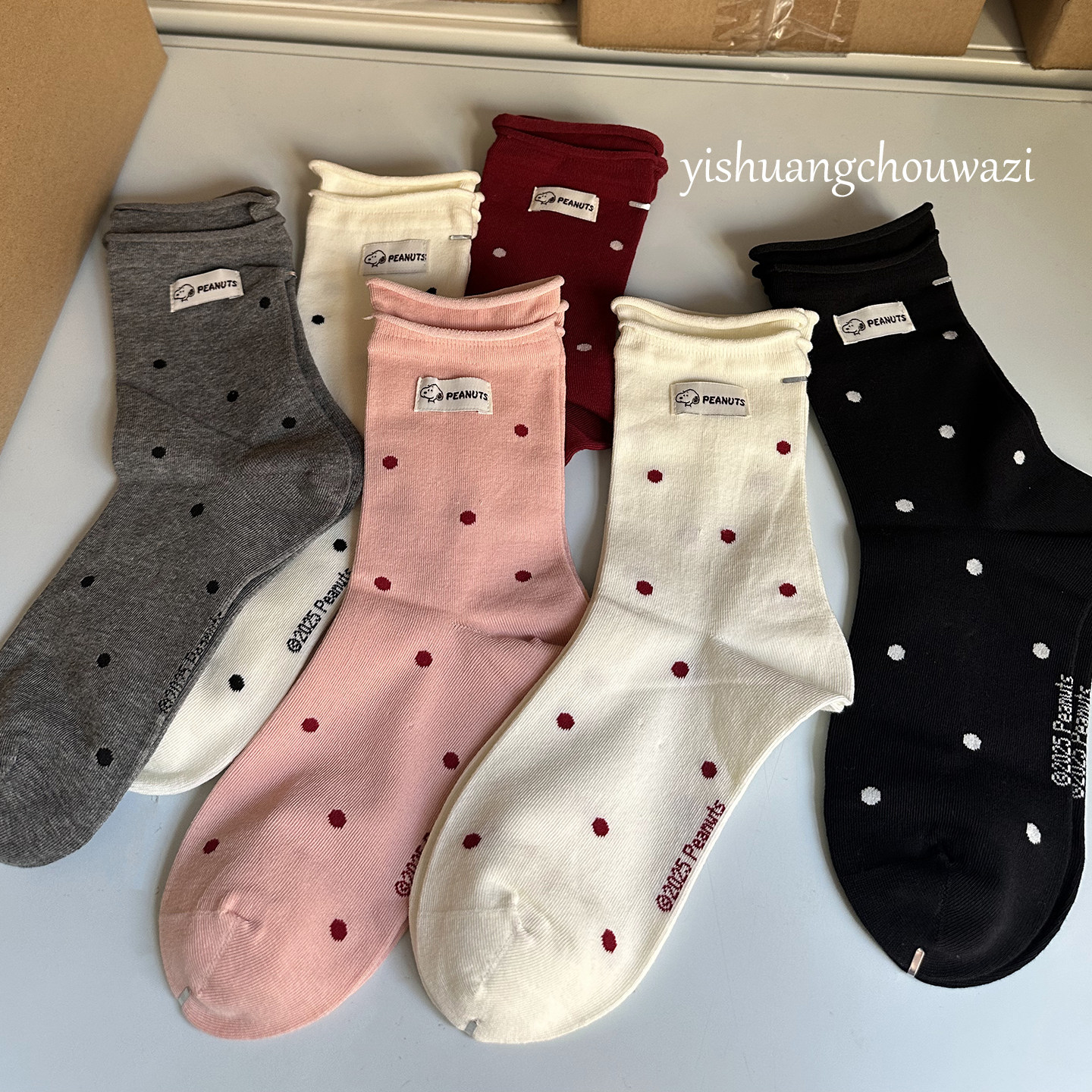 史努比波点双罗口布标中筒韩系袜