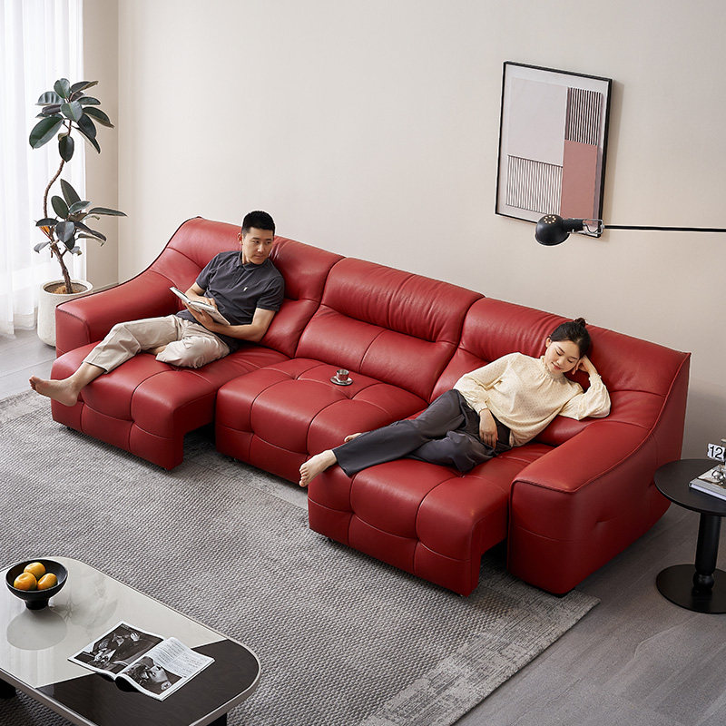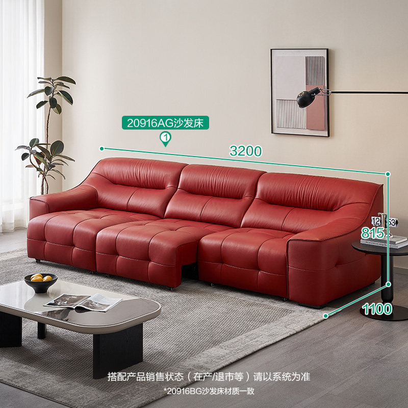全友家居门店同款 20916AG BG 一字型头层牛皮电动功能皮艺沙发床