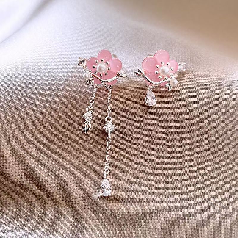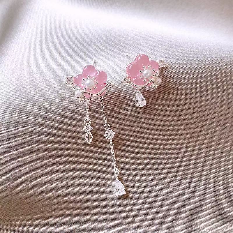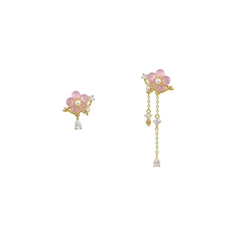 新中式不对称花朵耳环女2024新款爆款气质耳钉轻奢高级感国风耳饰