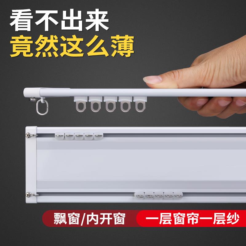 加厚铝合金免打孔连体双轨道超薄极简H窗帘轨道顶装打孔安装窗帘