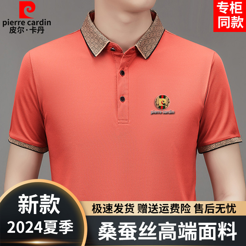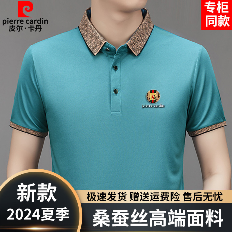皮尔卡丹高档轻奢桑蚕丝短袖T恤男士夏季薄款半袖中年翻领POLO衫