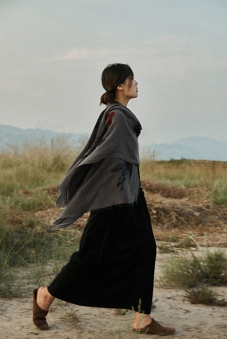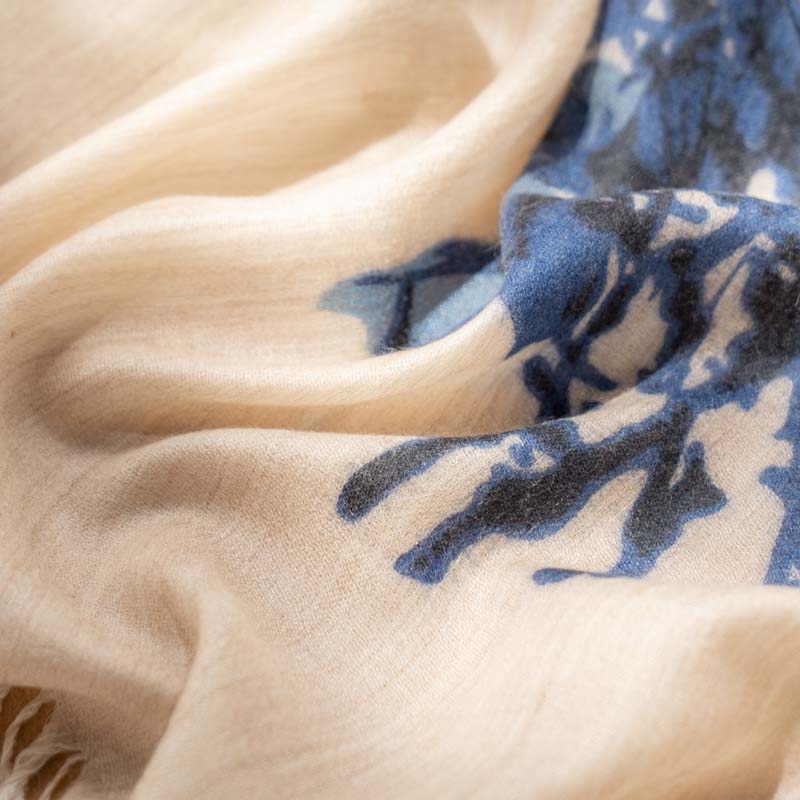 秋冬女200支纯山羊绒双面印花保暖色织提花披肩百搭围巾柿柿如意