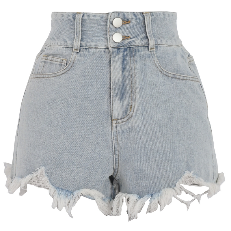 森女部落原创纯色日常百搭高腰显瘦浅色牛仔短裤女超短裤热裤女夏