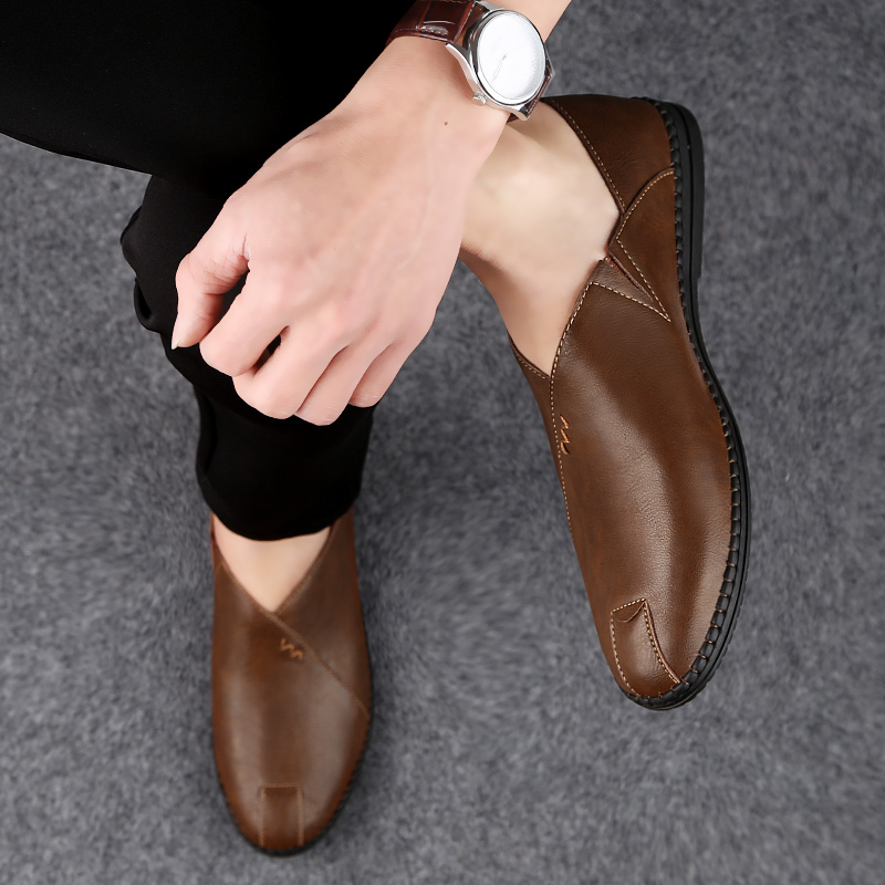 手工缝线男鞋秋季软底休闲皮鞋男透气懒人驾车鞋韩版潮豆豆鞋