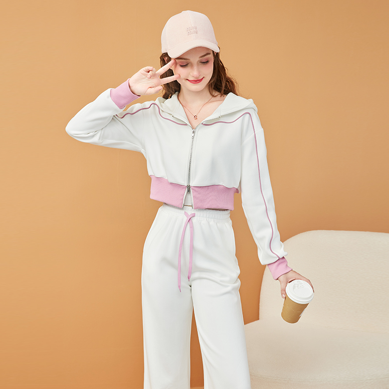 2025春秋新款奶系穿搭时尚卫衣休闲运动服套装女炸街阔腿裤两件套