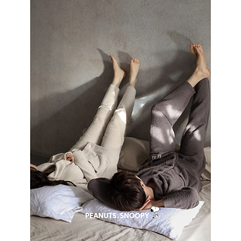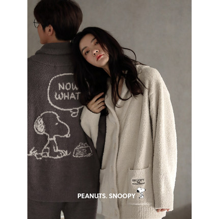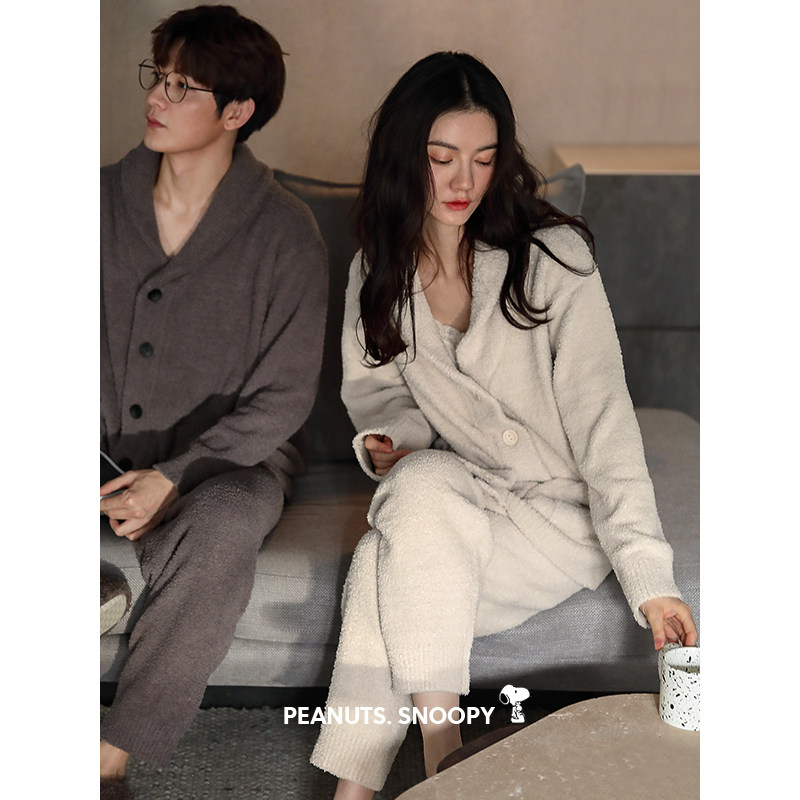 贝妍史努比秋冬季情侣睡衣女冬天可爱半边绒男士珊瑚绒家居服套装
