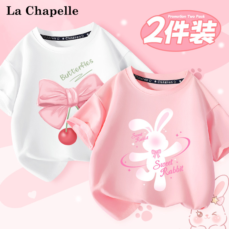 拉夏贝尔女童短袖t恤夏季2025新款潮洋气中大童儿童纯棉半袖夏装