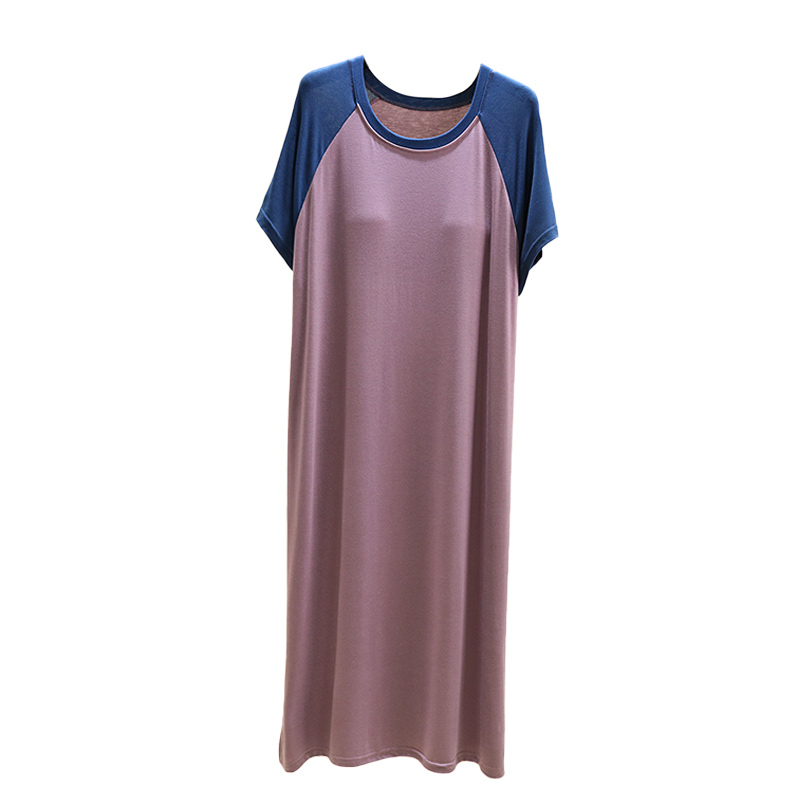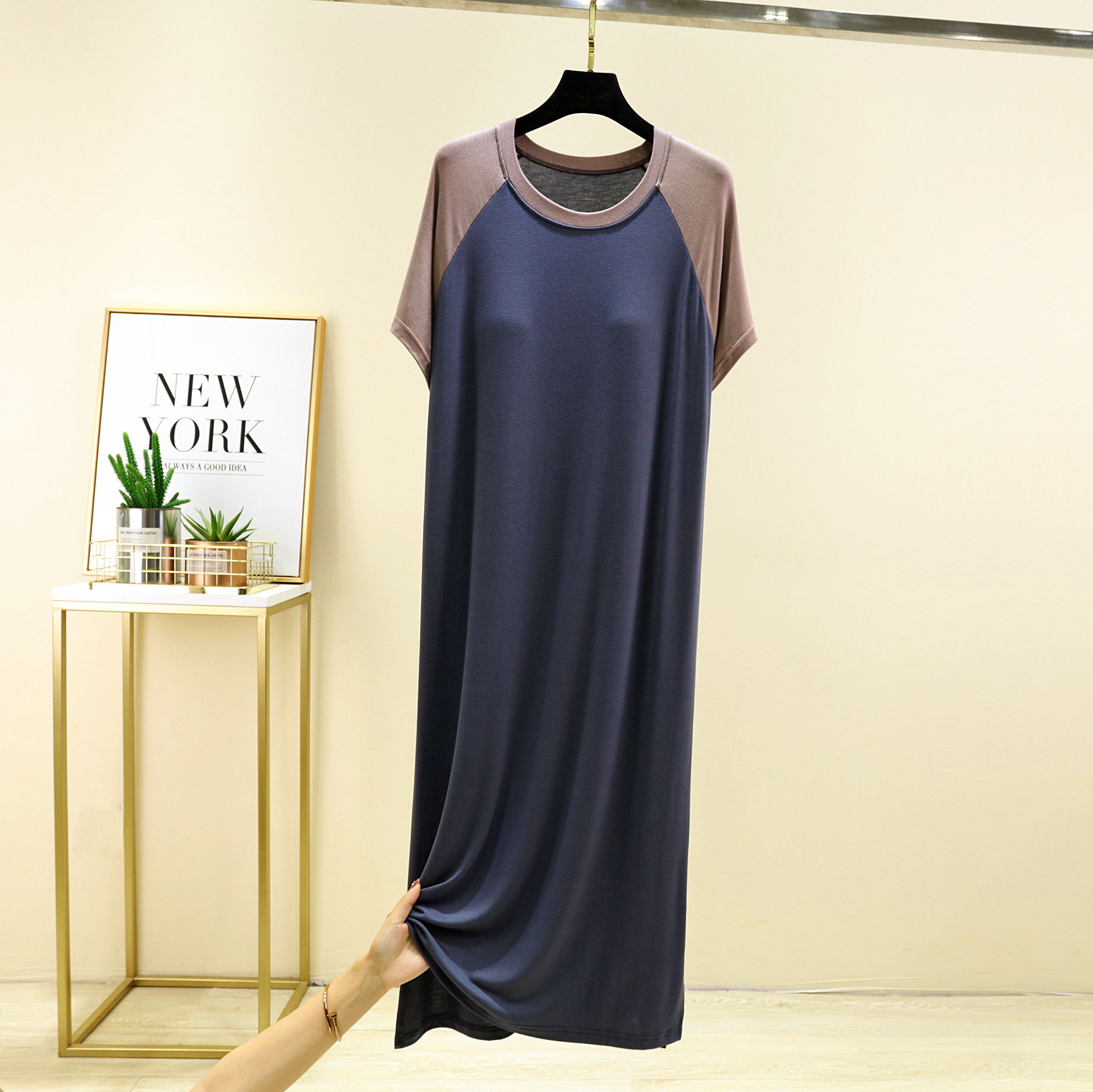 莫代尔圆领带胸垫睡裙女夏季宽松短袖睡衣长裙休闲外穿家居裙