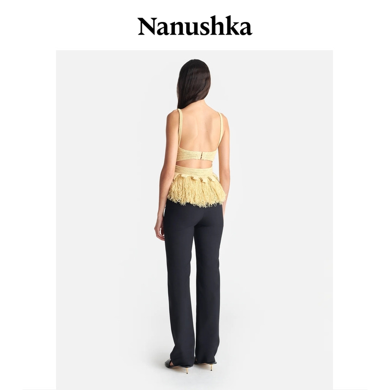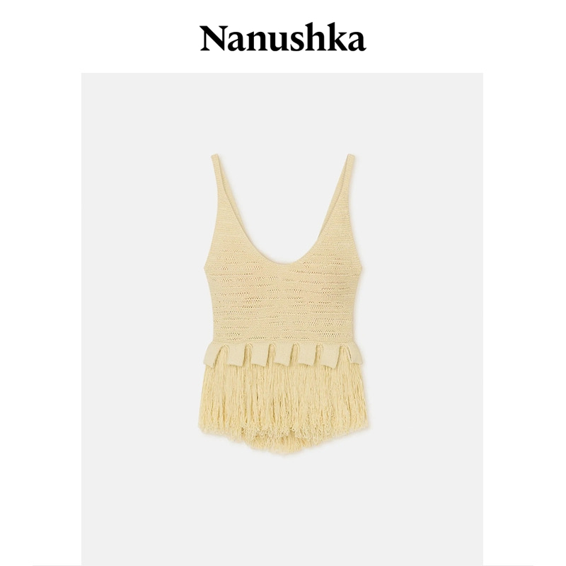 【秋冬新品】NANUSHKA 女士 ZULMA 黄色U领露背流苏针织吊带上衣