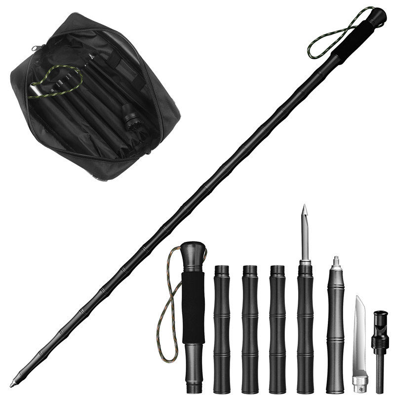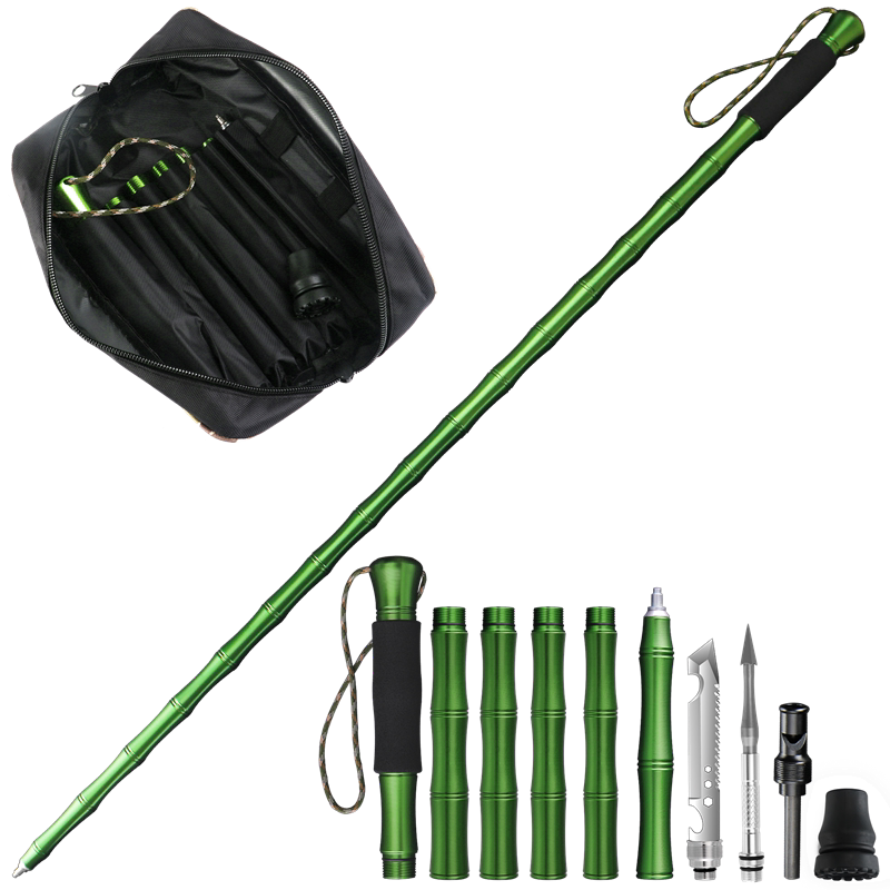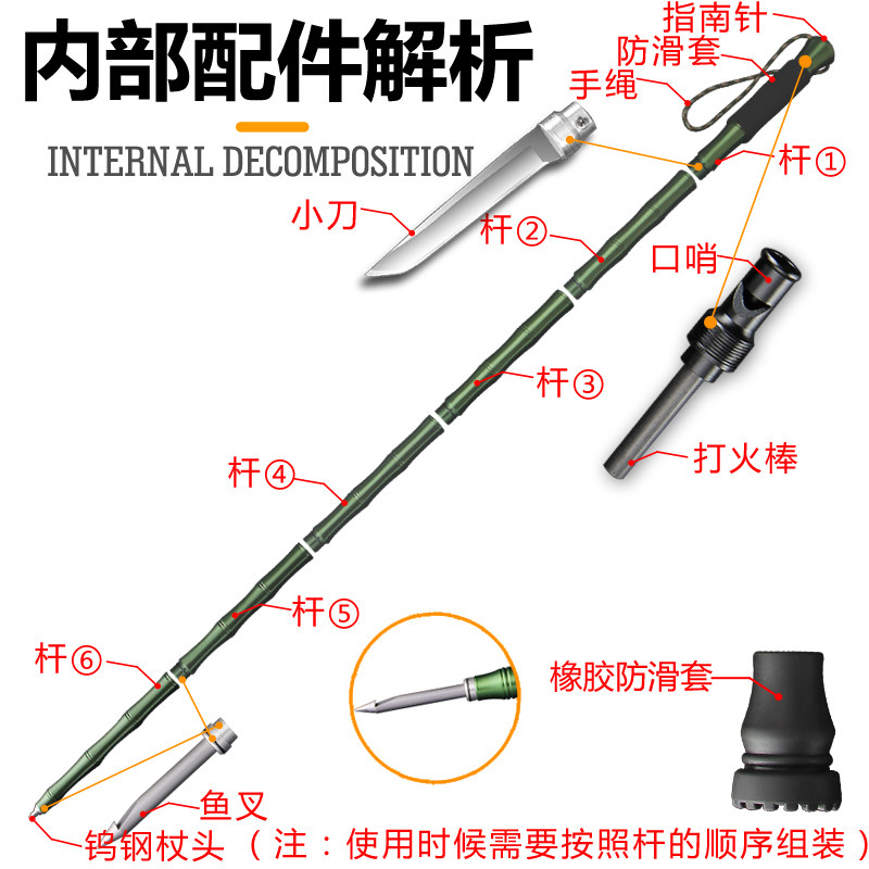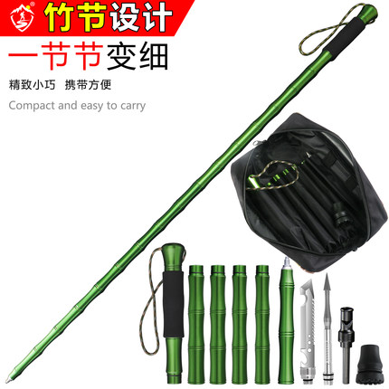 夜途铝合金登山杖手杖爬山户外徒步折叠多功能伸缩轻便带刀防身棍