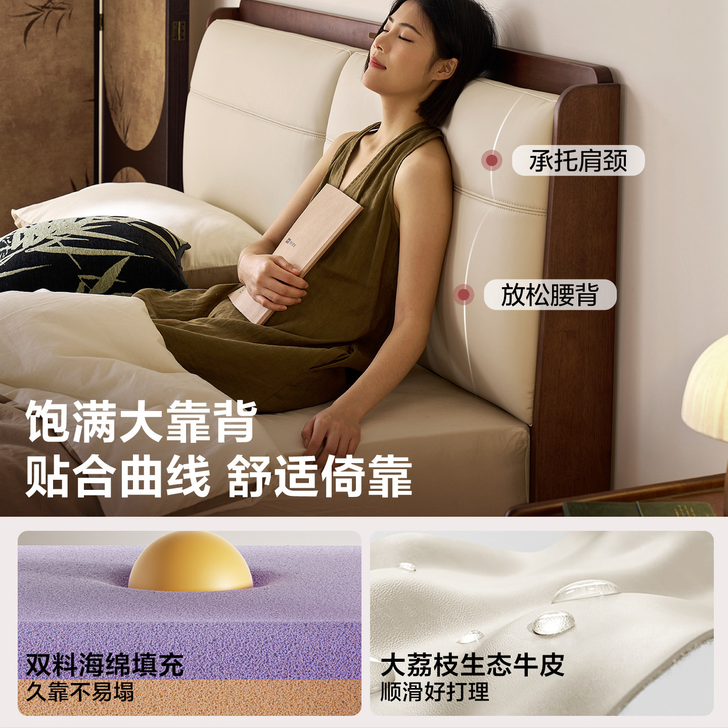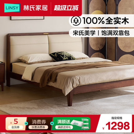 林氏家居复古主卧室大床1米8双人床架全实木床软包床1米5佛山家具