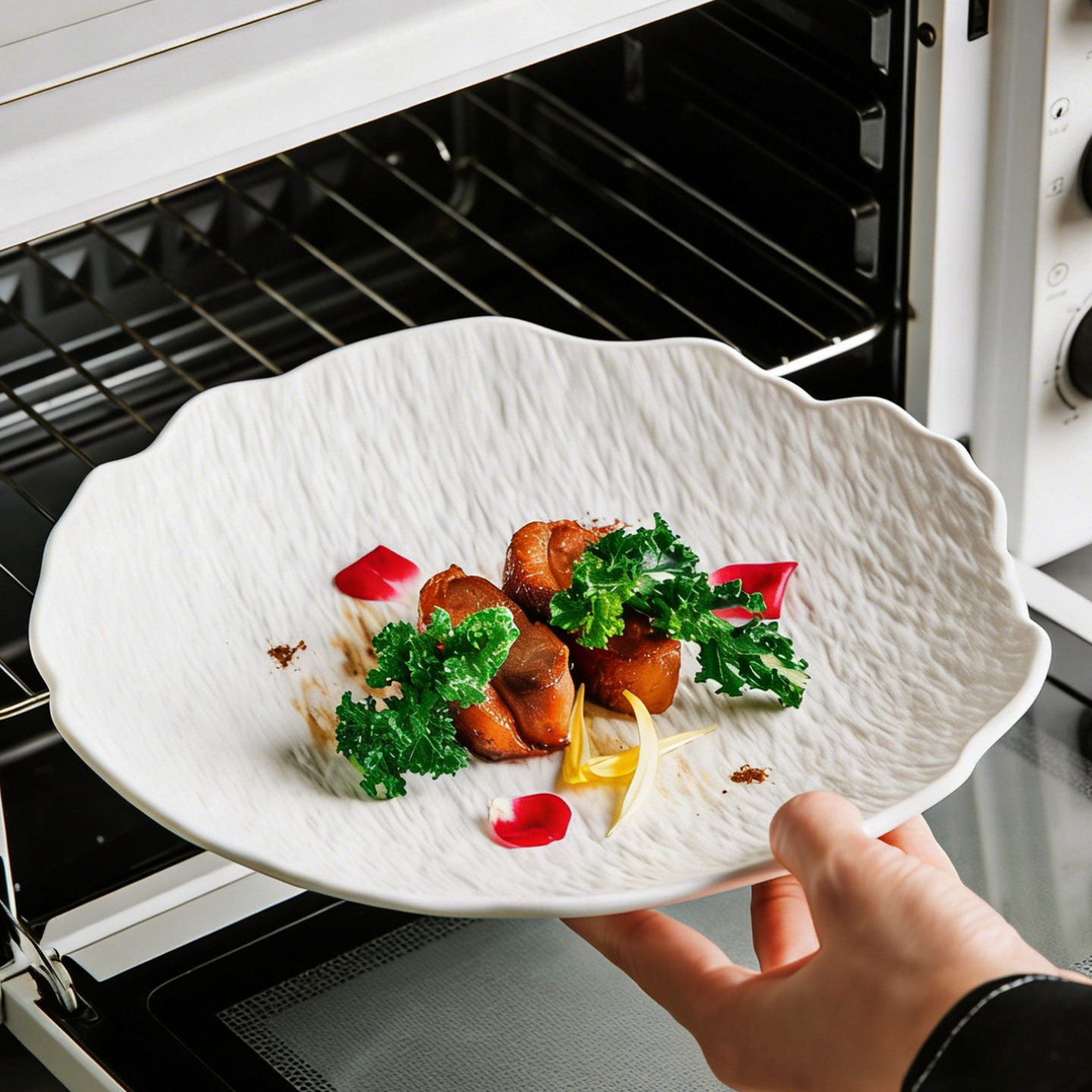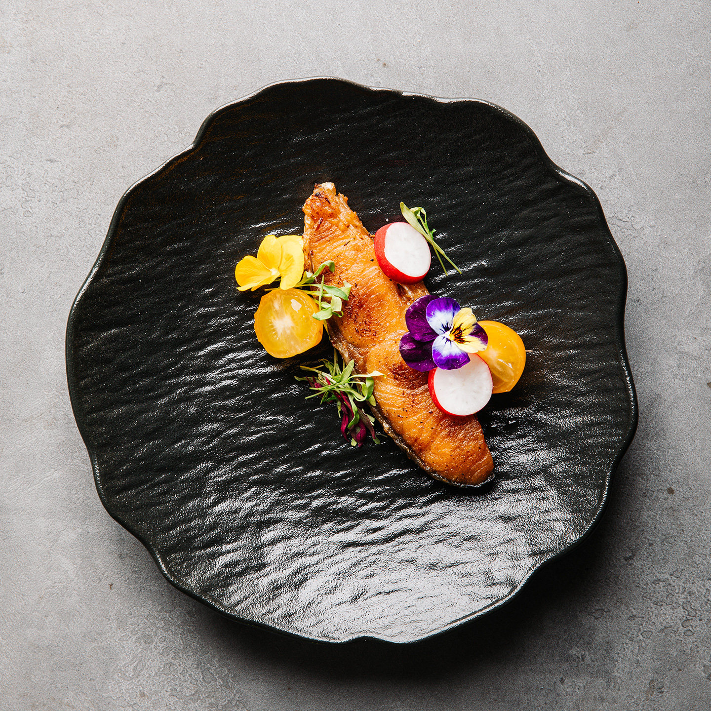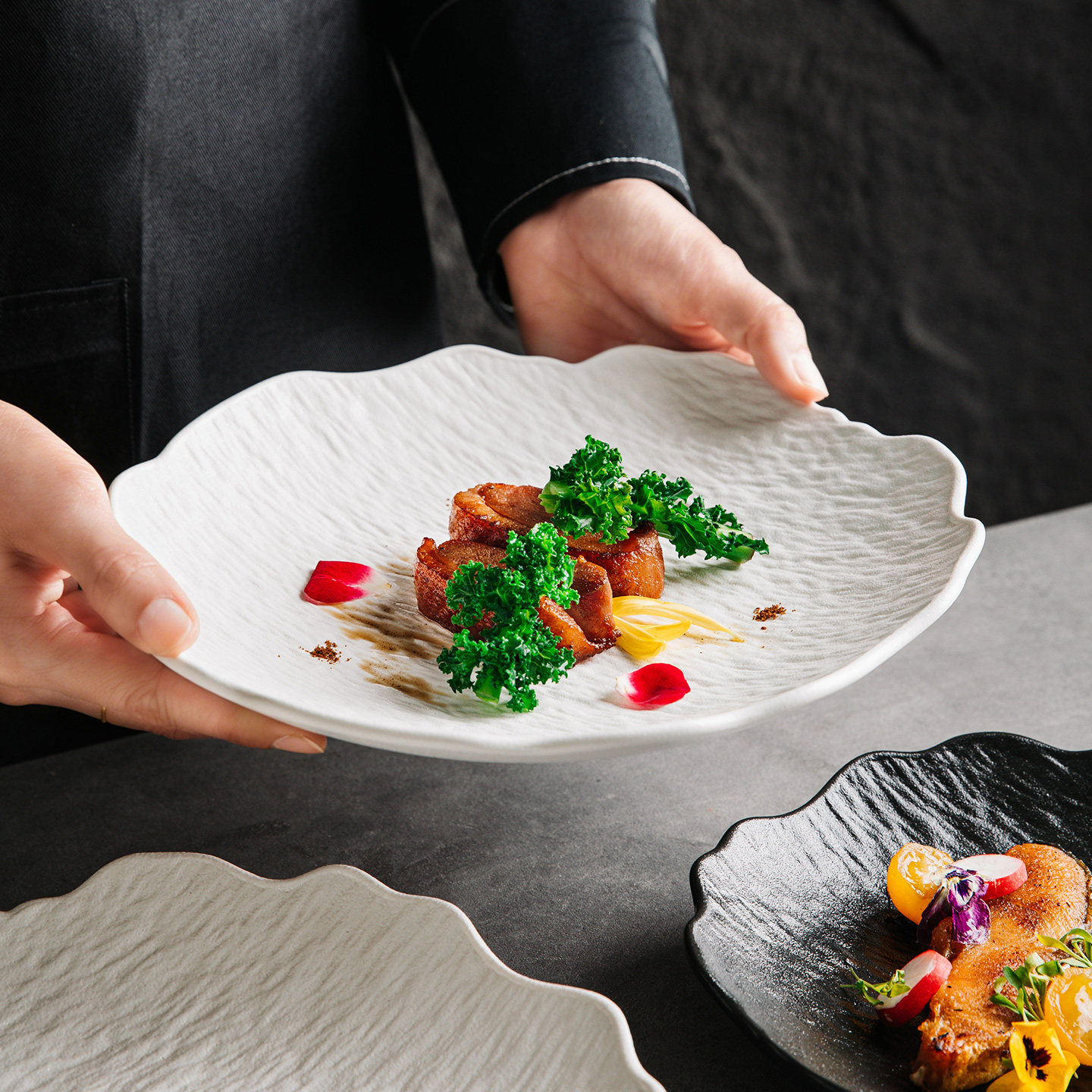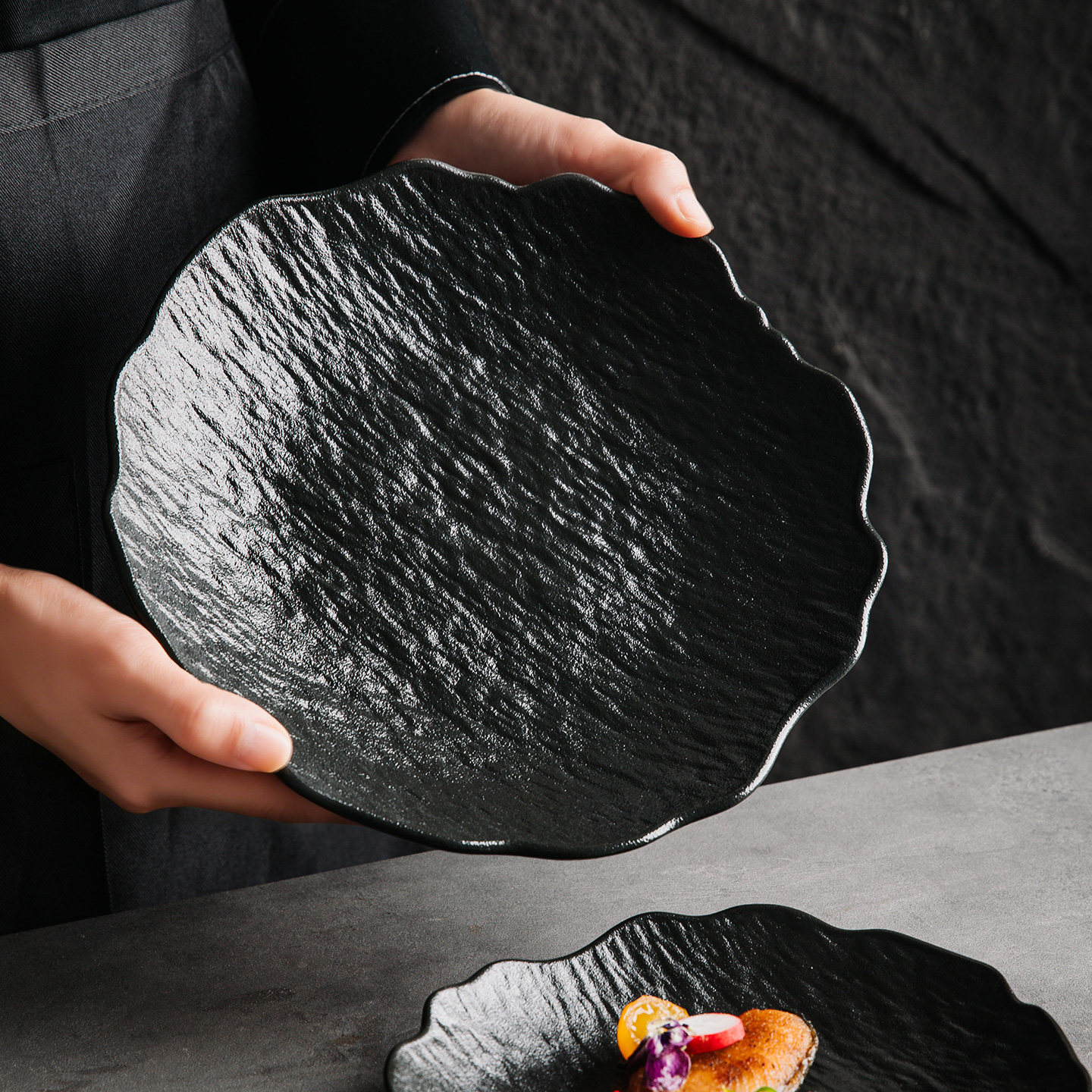 不规则石纹陶瓷黑色浅盘水果盘