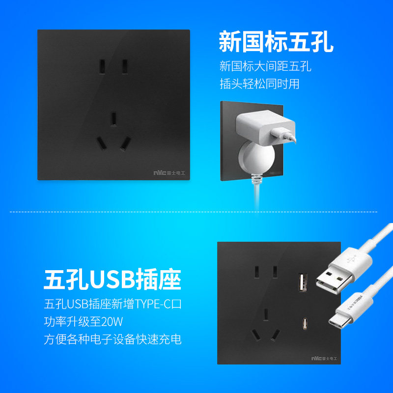 NVC雷士电工86型开关插座面板 Q18苍青 5.2mm超薄款 16A大电流